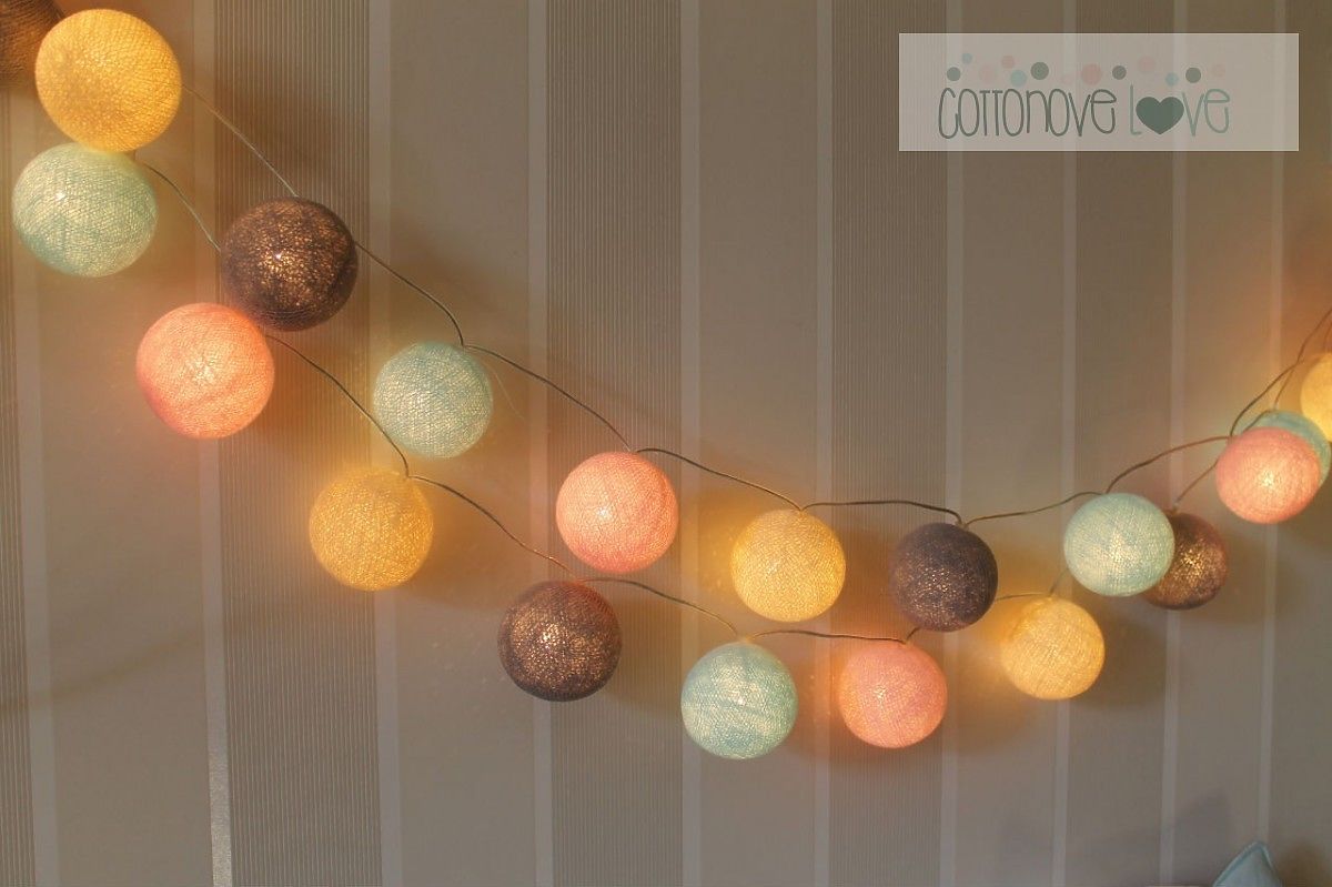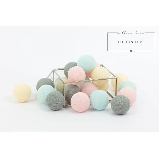 Nádherná girlanda z úsporných a bezpečných LED žárovek a bavlněných kuliček v nádherných pastelových barvách.