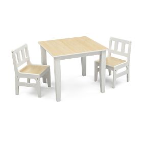 Opremite otroško sobo s čudovito leseno mizo in stoli. Gre za mizo s stoli v univerzalni barvi bela / naravna. Set je primeren za vse otroške sobe.