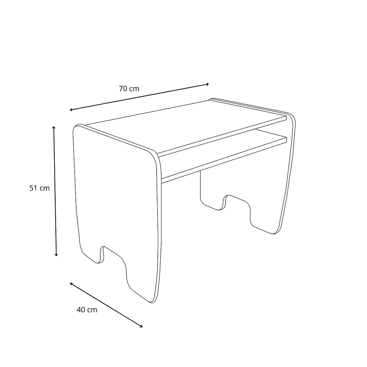 Miza je opremljena s prostorno polico pod ploščo, ki olajša organizacijo in shranjevanje najnujnejših predmetov, kot so knjige, barvice ali igrače. Tako je vse vedno pri roki in v sobi je lažje vzdrževati red.