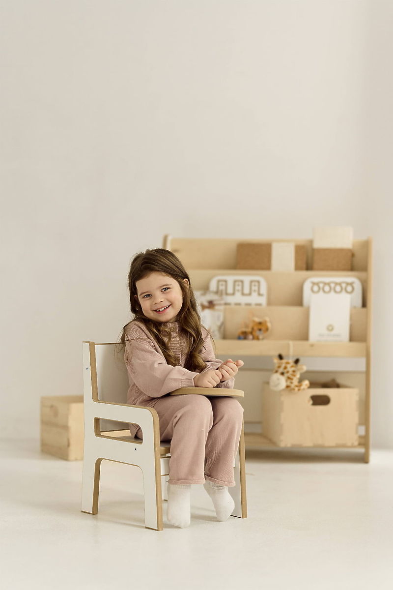 Leseni otroški stol je primeren za otroke različnih starosti – služi tako enoletnemu otroku, ki odkriva svet, kot tudi starejšemu, kreativnemu predšolskemu otroku. Nudi trdno oporo hrbtu in hkrati zagotavlja udobno sedenje med igro, risanjem ali obedovanjem. Odlično se obnese tudi v kuhinji ali kopalnici – otrok lahko stopi na sedež in zlahka doseže delovno površino ali umivalnik. Vsi robovi so skrbno zaobljeni, da se zagotovi največja varnost majhnih uporabnikov.
