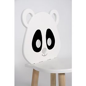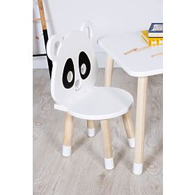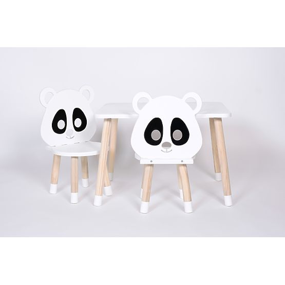 Otroška mizica in 2 stolčka v kombinaciji bele in naravnega lesa. Soba za dečke in deklice bo oživela z originalnim kompletom pohištva. Stolčki v obliki pande so prikupni.