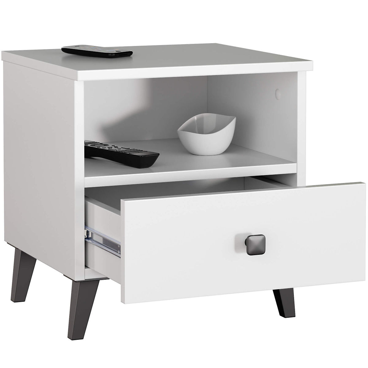 Bela nočna omarica MOBI K01 z 1 predalom in 1 polico. .. več