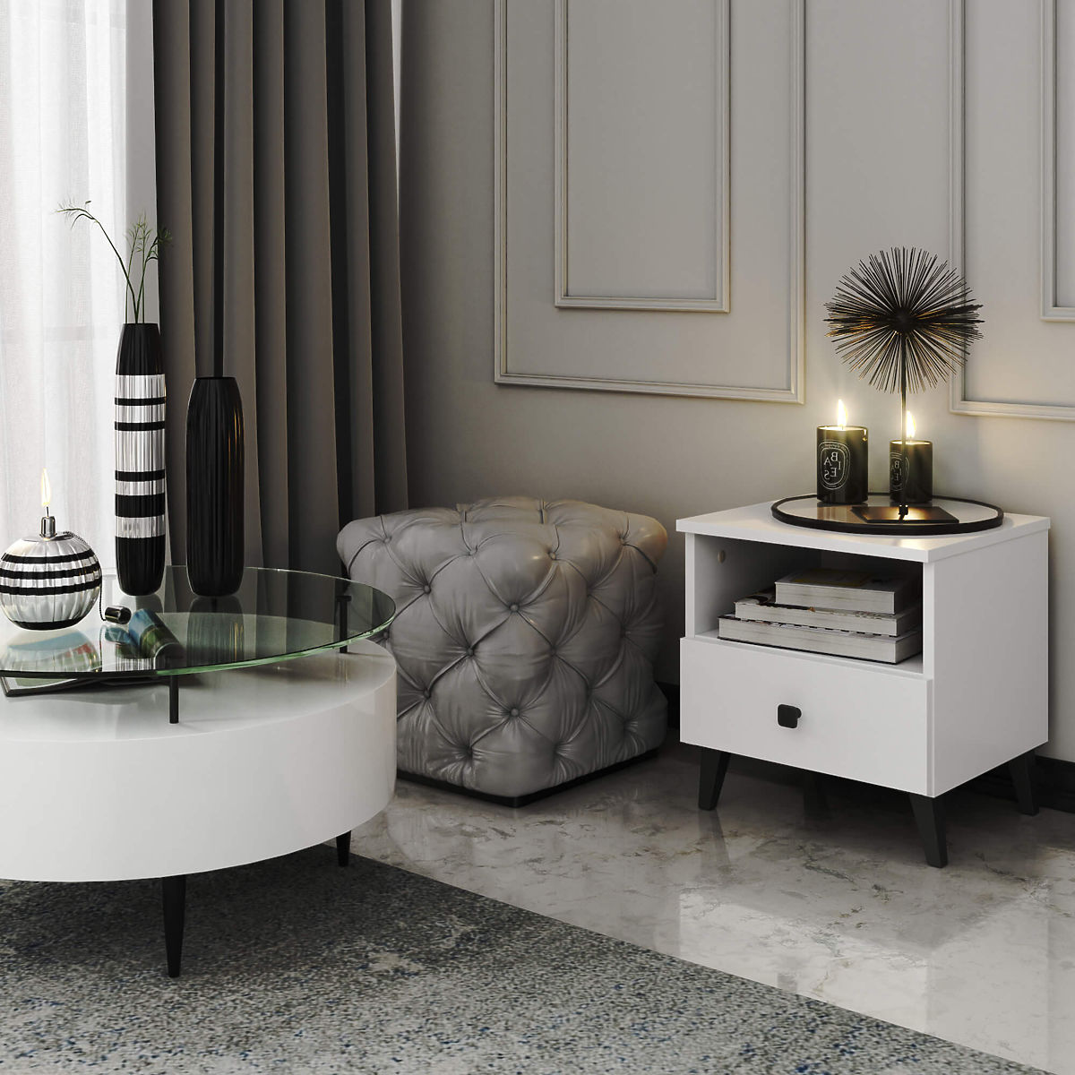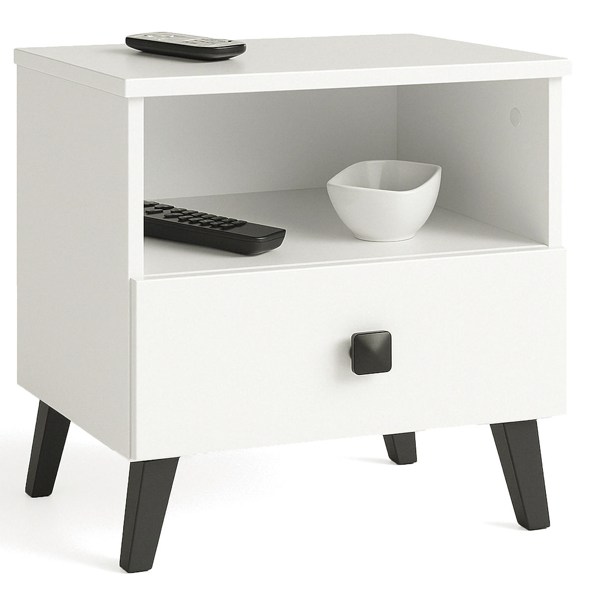 NOČNA OMARICA MOBI 1 PREDAL 1 POLICA BELA ČRNA