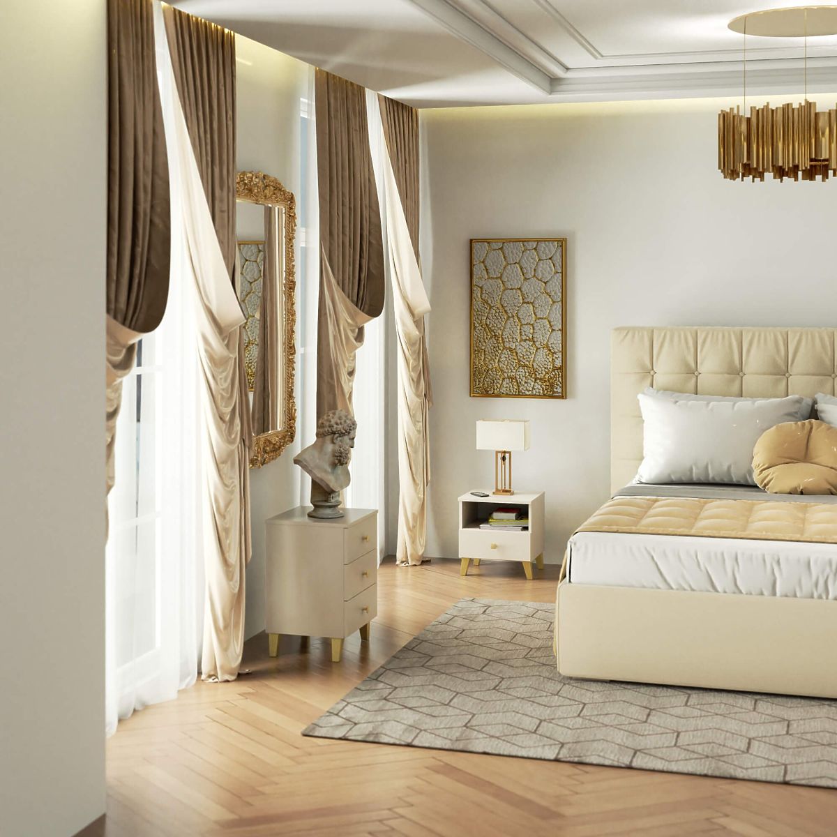 - sodoben videz - pohištvo je preprosto v obliki, pritegne zanimiva kombinacija barv kašmirja z zlatom,