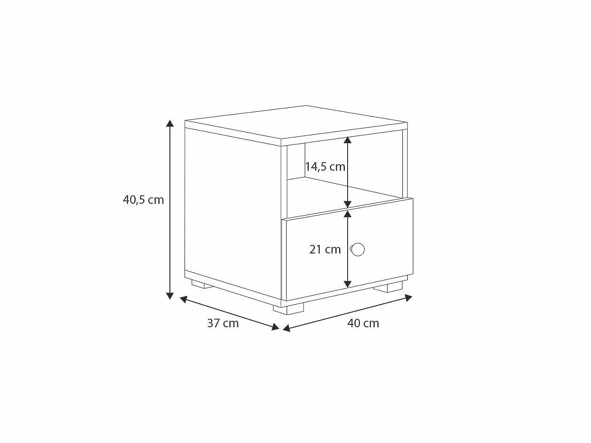 Nočna omarica EMI je zasnovana z mislijo na udobje in funkcionalnost. Opremljena je s praktičnim predalom, ki omogoča shranjevanje drobnih predmetov, kot so knjige, igrače ali dodatki, kar pomaga ohranjati red. Trdna konstrukcija iz laminirane pohištvene plošče zagotavlja trajnost in odpornost na vsakodnevno uporabo. Dodatna prednost je možnost izbire barvnega ročaja, kar omogoča prilagoditev omarice slogu sobe in prinaša element personalizacije, ki ga otroci obožujejo.