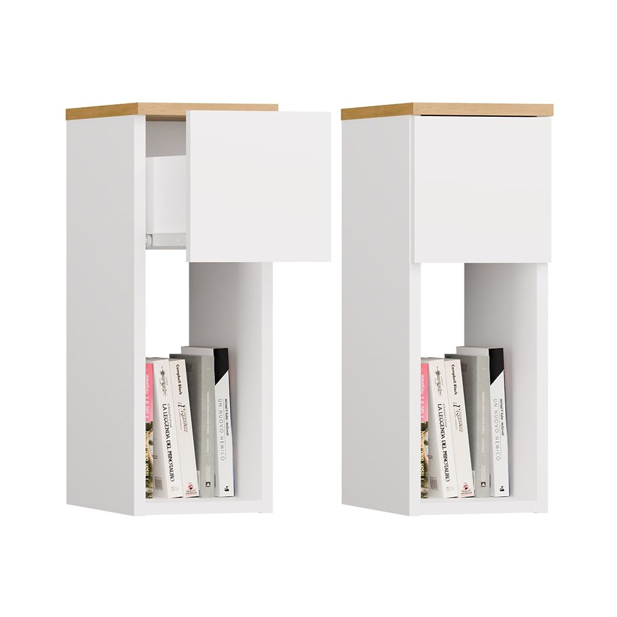 Praktična nočna omarica z odprto polico in predalom. .. več