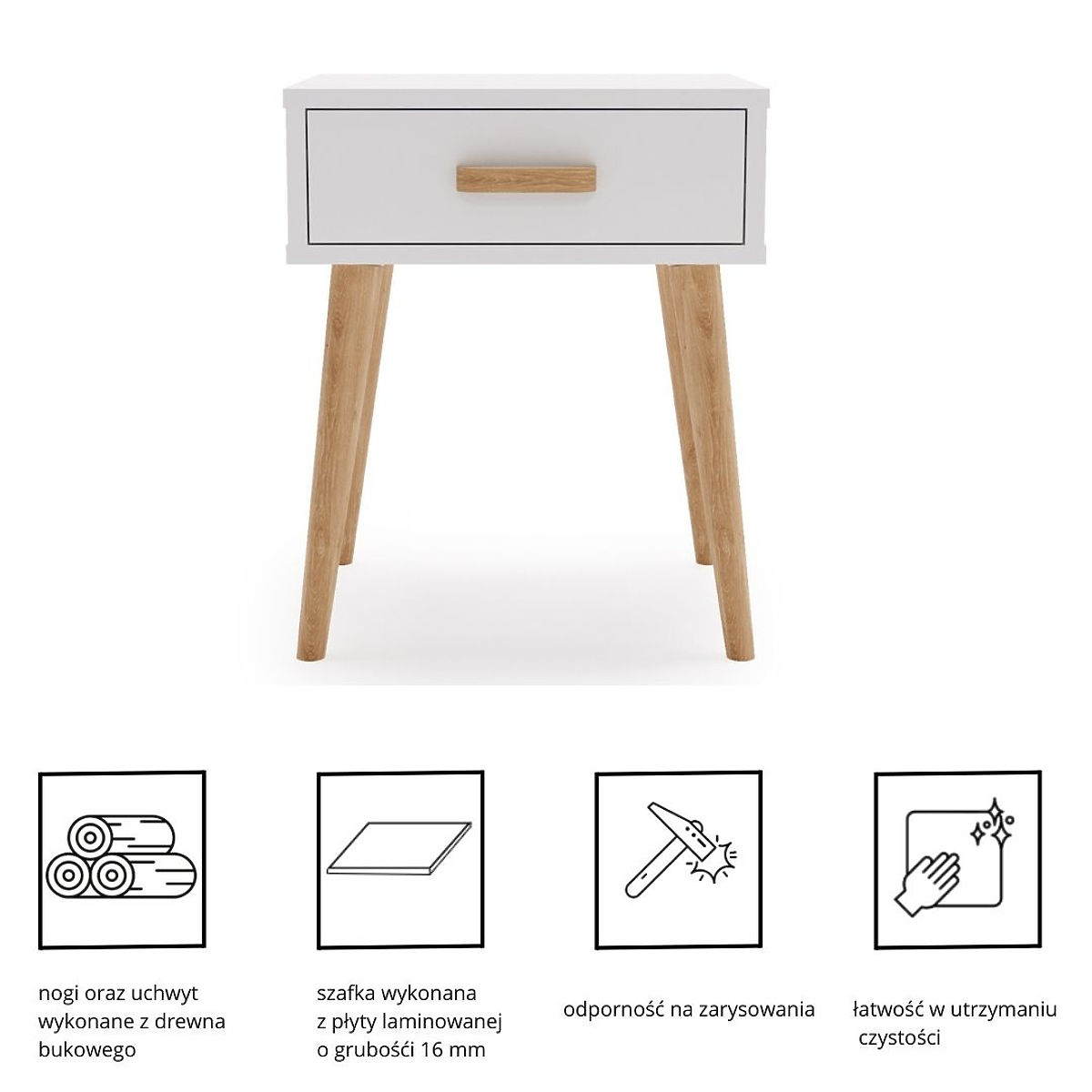 • Stabilna konstrukcija – trdne bukove noge zagotavljajo trajnost in eleganten videz.