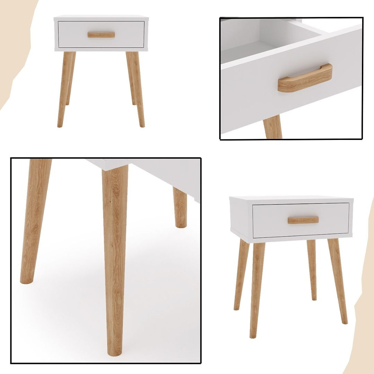 LUNA je več kot le nočna omarica – je praktična rešitev, ki olajša organizacijo vsakodnevnih predmetov. Na njeni površini lahko postavite nočno svetilko, budilko ali dekoracije, medtem ko prostoren predal omogoča shranjevanje drobnarij, ki jih želite imeti pri roki pred spanjem. Skrbno izbrani materiali zagotavljajo trajnost, pozornost do detajlov pa zagotavlja, da pohištvo izgleda elegantno in moderno. Stabilne lesene noge dodajajo lahkotnost in zagotavljajo trdnost, kar ga naredi ne samo lep, ampak tudi funkcionalen dodatek vašemu interierju.