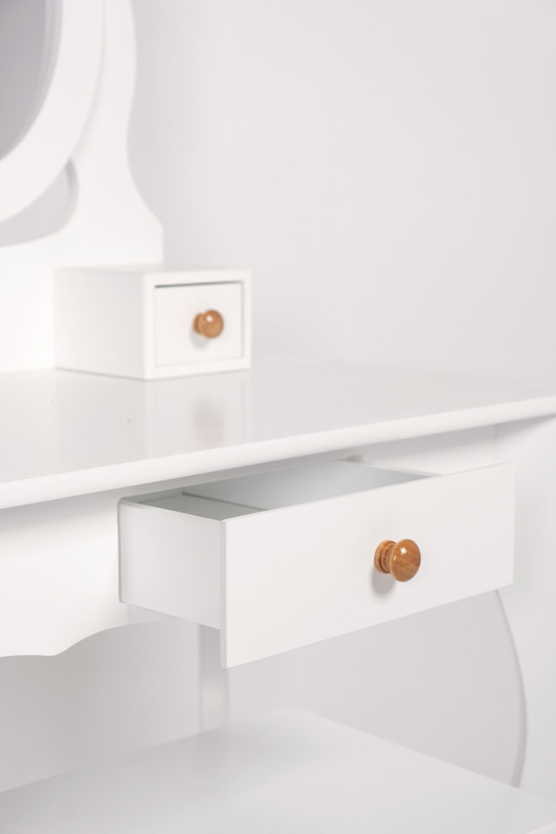 Kozmetična mizica z ogledalom in predali bo popoln prostor za ličenje in odlična shramba za kozmetiko, nakit ali druge dodatke.