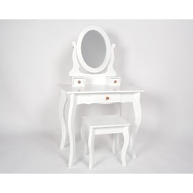 Kozmetična mizica z ogledalom in predali bo popoln prostor za ličenje in odlična shramba za kozmetiko, nakit ali druge dodatke. Paket vsebuje udoben stolček. .. več