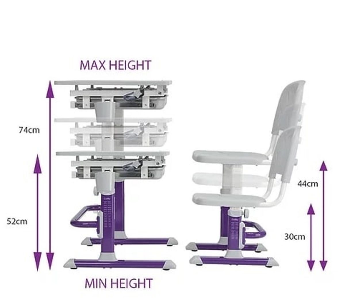 Pro zdravý rozvoj dítěte je velmi důležité správné držení těla při sezení. Tento šedo-fialový set psacího stolu a židle je navržen speciálně pro školáky a zajistí jim komfortní a zdravé sezení při učení, čtení a jiných aktivitách.