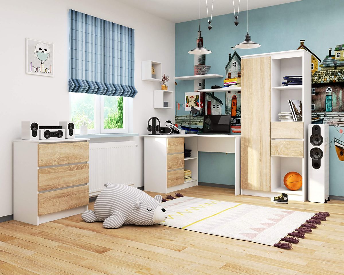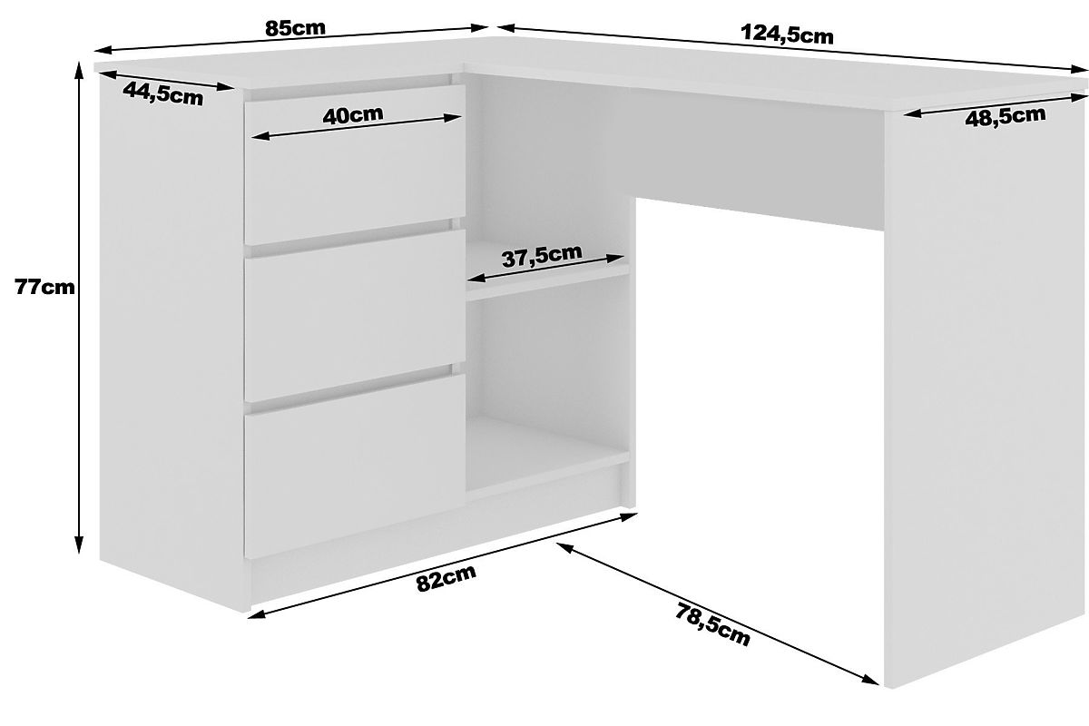 Banaby.si » Otroško pohištvo / Mize / Mize / Pisalne mize / KOTNIŠKA PISALNA MIZA B16 124 cm LEVA 3 PREDALI PK BELA / SONOMA