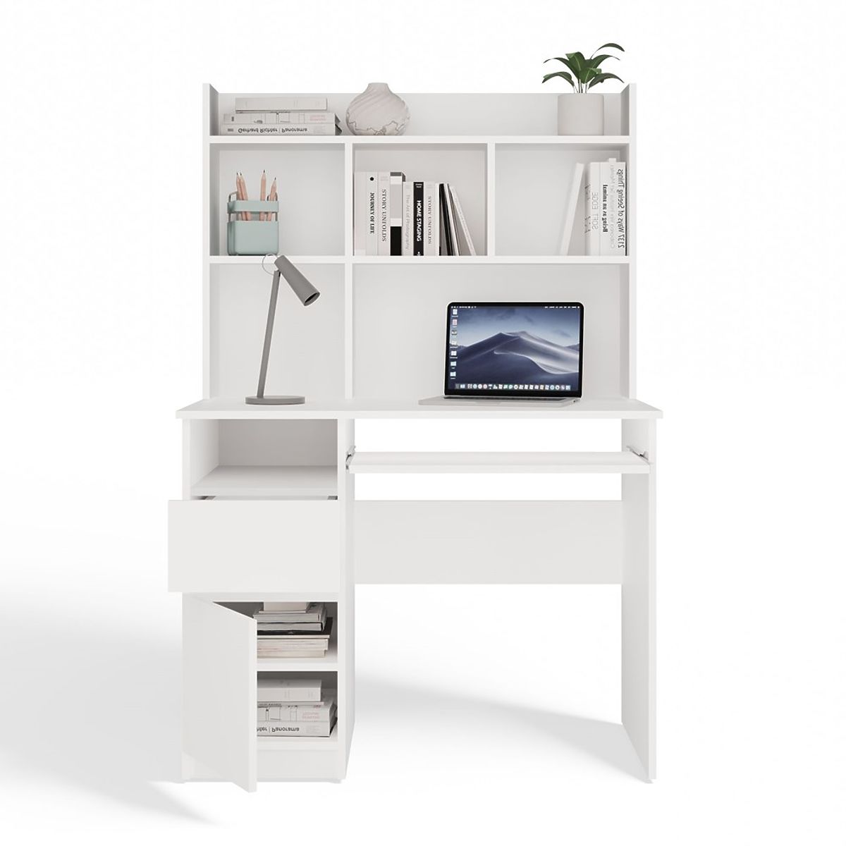 Miza PORTO Leva Z Nadgradnjo Bela Mat Predal Police Za Pisarno Sobo