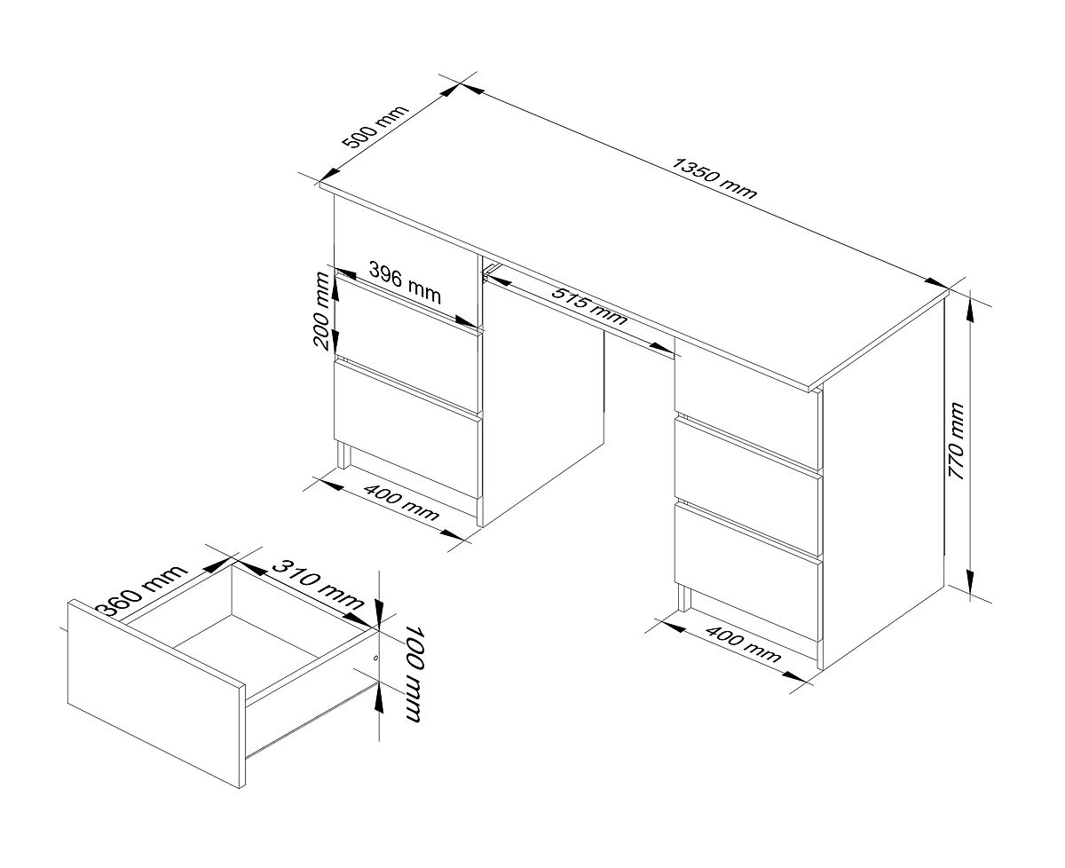 Udobna računalniška miza je osnova za organizacijo delovnega ali študijskega prostora doma in v pisarni. Velika delovna površina, na katero lahko enostavno postavite monitor namiznega računalnika ali prenosnika in razporedite dodatne materiale ali dokumente, je osnova pohištva, namenjenega pisarniškemu delu. Za to so potrebni tudi prostorni predali, ki pomagajo ohranjati red v dokumentaciji in olajšajo vsakodnevno delo. Odlična izbira, ki izpolnjuje navedena merila, je rjava računalniška miza A-11. Izdelana je iz laminirane plošče debeline 16 mm, odporne na obrabo, zaradi česar je miza primerna tudi za otroke in mladostnike. Zaradi številnih predalov, katerih čela so prav tako iz laminirane plošče, boste dobili veliko prostora za organizacijo, shranjevanje dokumentov ali dodatkov, potrebnih za pisarniško delo ali domače naloge. Polica za tipkovnico in predali so nameščeni na kovinskih valjčnih vodilih, kar olajša njihovo izvleko. Vidni robovi mize so opremljeni z ABS robom, kar povečuje njihovo odpornost proti poškodbam. Miza je dobavljena razstavljena, potrebno jo je sestaviti po priloženih navodilih. Proizvajalec zagotavlja 24-mesečno garancijo.