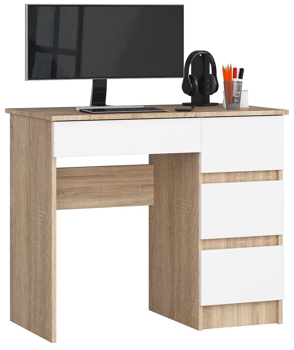 Cenovno dostopna in hkrati kakovostna računalniška miza, pri kateri se lahko udobno učite in delate? Da, to je mogoče z našo ponudbo, kjer najdete računalniško mizo A-7 širine 90 cm v desni sonomi in beli barvi. Je sodoben in hkrati funkcionalen kos pohištva. Idealno se prilega v dnevno sobo, mladinsko sobo ali pisarno.