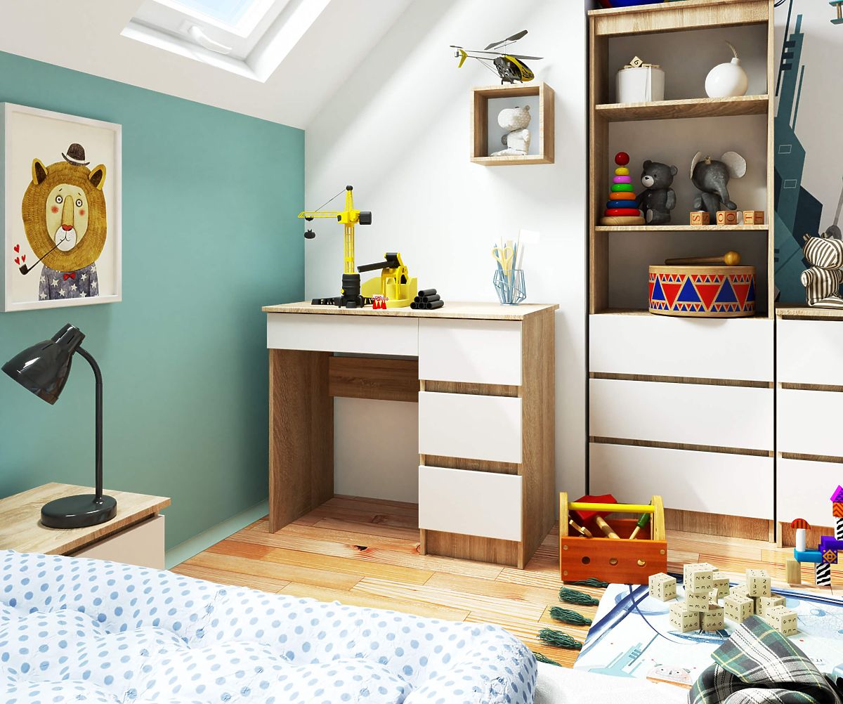 Banaby.si » Otroško pohištvo / Mize / Mize / Pisalne mize / PISALNA MIZA A-7 CLP SONOMA / BELA PK DESNA