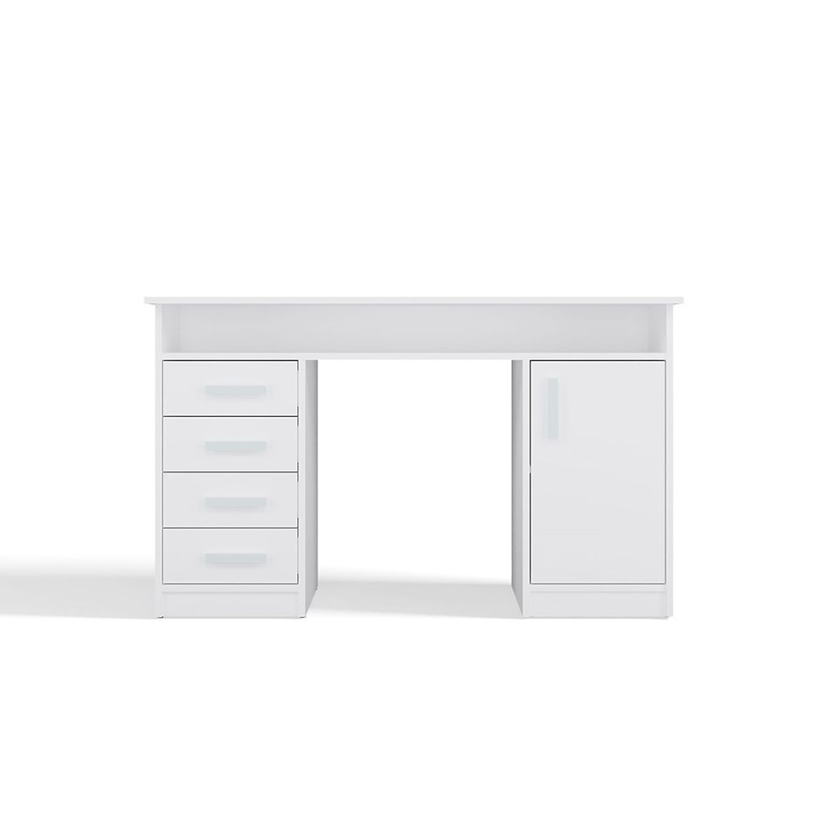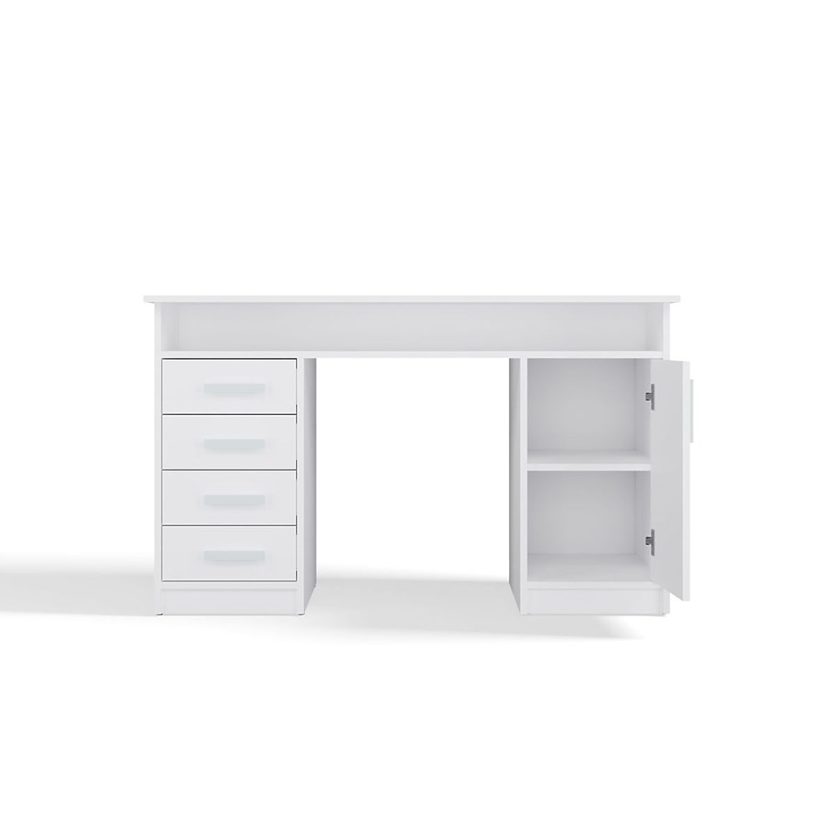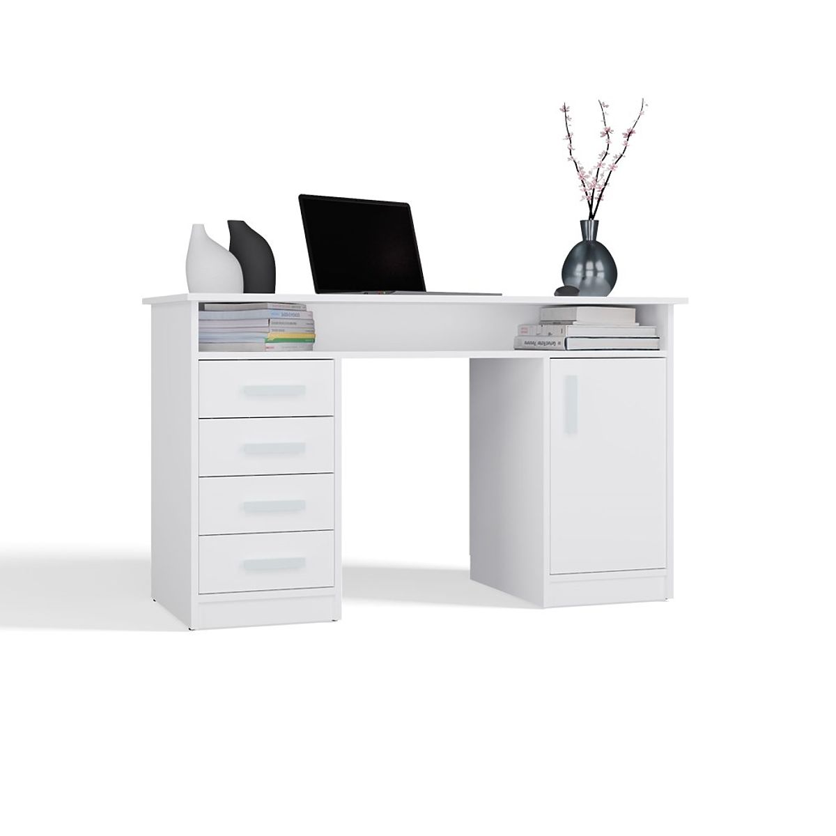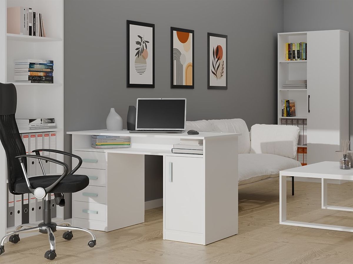 Opremljena s 4 predali in zaprtim prostorom z 1 vrati in 2 policama, zagotavlja veliko prostora za shranjevanje dokumentov, knjig ali pisarniških pripomočkov. Dodatna odprta polica pod ploščo je idealna za manjše predmete, prenosni računalnik ali zvezke.
