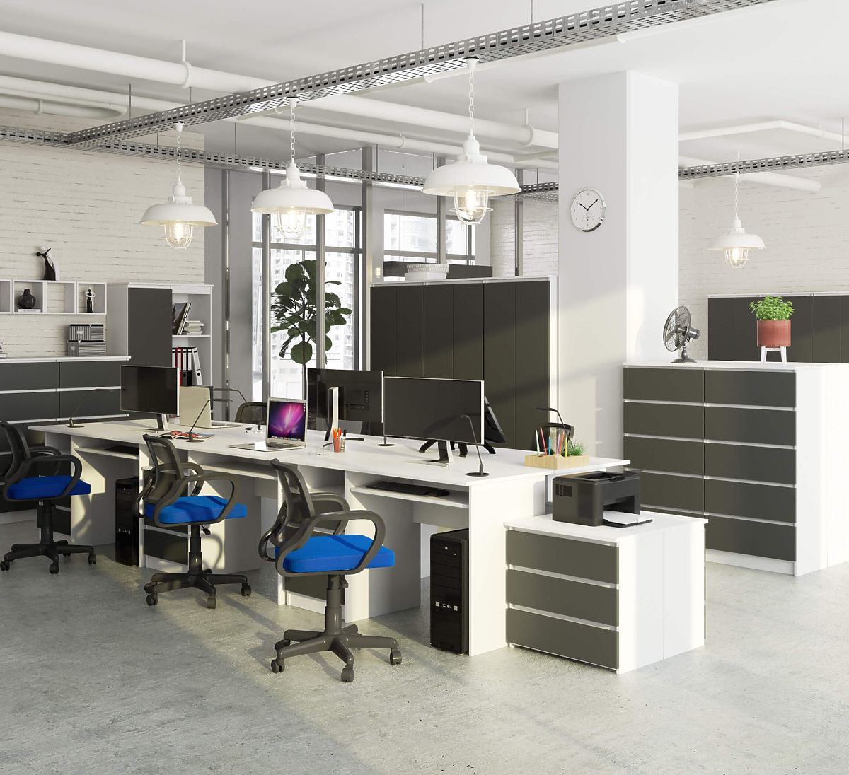 Mešanica barv - korpus bel, čelne površine grafitno sive