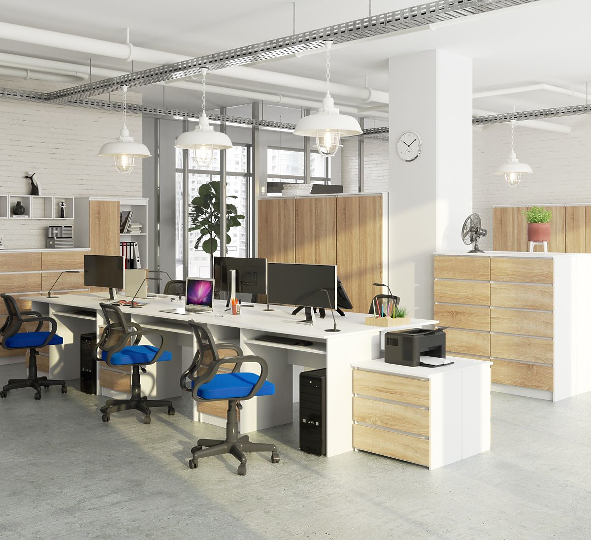 Pisalna miza iz laminirane plošče z veliko prostora. .. več