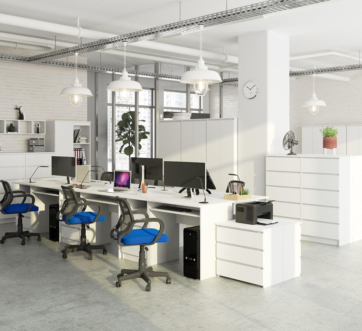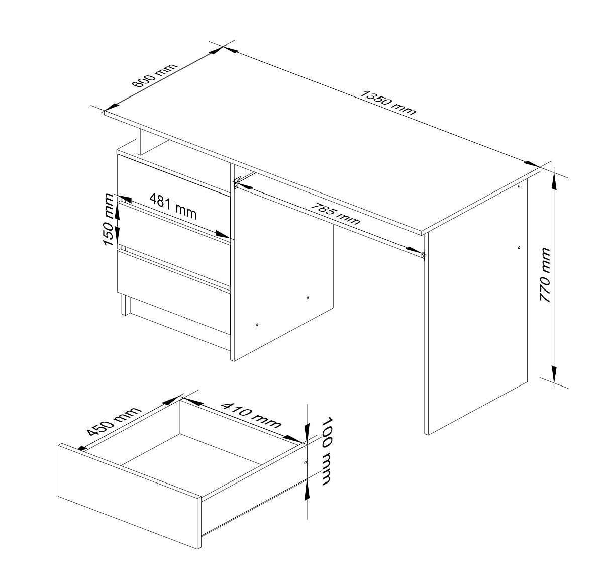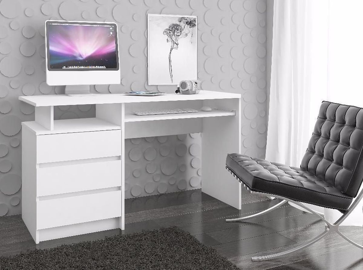 Bela prosto stoječa miza je moderno oblikovano pohištvo, ki se popolnoma prilega sodobnim aranžerskim standardom. Navdušuje s svojo preprostostjo in eleganco, in to v modni beli barvi. Miza vsebuje tri prostorne predale, odprto polico, izvlečno polico za tipkovnico in široko (135 centimetrov) ploščo. Prosto stoječa miza CLP se odlično prilega tako v pisarno kot v domačo delovno sobo. Ta ponudba bo zagotovo izpolnila pričakovanja tistih, za katere je delovna površina najpomembnejša. Njena globina je do 60 centimetrov, kar omogoča udobno uporabo računalnika in drugih pisarniških potrebščin. Izdelek je priljubljen tudi kot igralna miza, kjer sta prostor in udobje uporabnika med dolgim igranjem zelo pomembna.