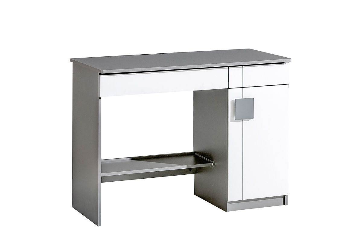 Sodobna pisalna miza Gumi iz laminata je primerna za otroške sobe tako za fante kot punce. Barvna kombinacija bele in antracitno sive je moderna. Pod vrhom mize je podolgovat predal.