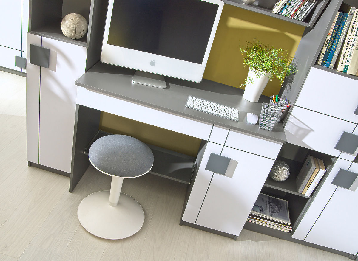 Sodobna pisalna miza Gumi iz laminata je primerna za otroške sobe tako za fante kot punce. Barvna kombinacija bele in antracitno sive je moderna. Pod vrhom mize .. več