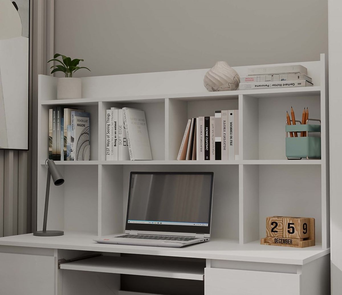 Ustrezna nadstavek s 5 policami – omogoča shranjevanje knjig, dekoracij in organizacijo delovnega prostora
