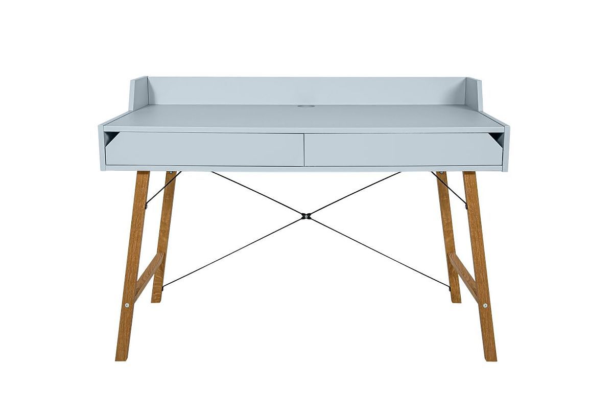 Pisalna miza s poudarkom na detajlih in minimalističnim dizajnom. Ima dva prostorna predala, obrobo delovne površine in luknjo za kabel, da bo vaša delovna površina urejena in organizirana.