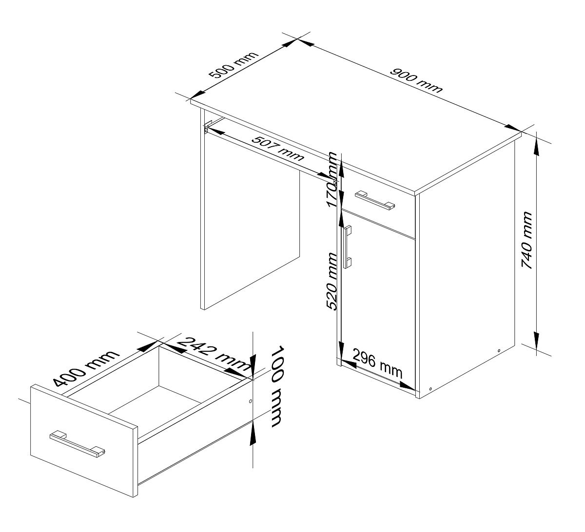 Pisalna miza iz laminirane plošče z izvlečno polico za tipkovnico. .. več