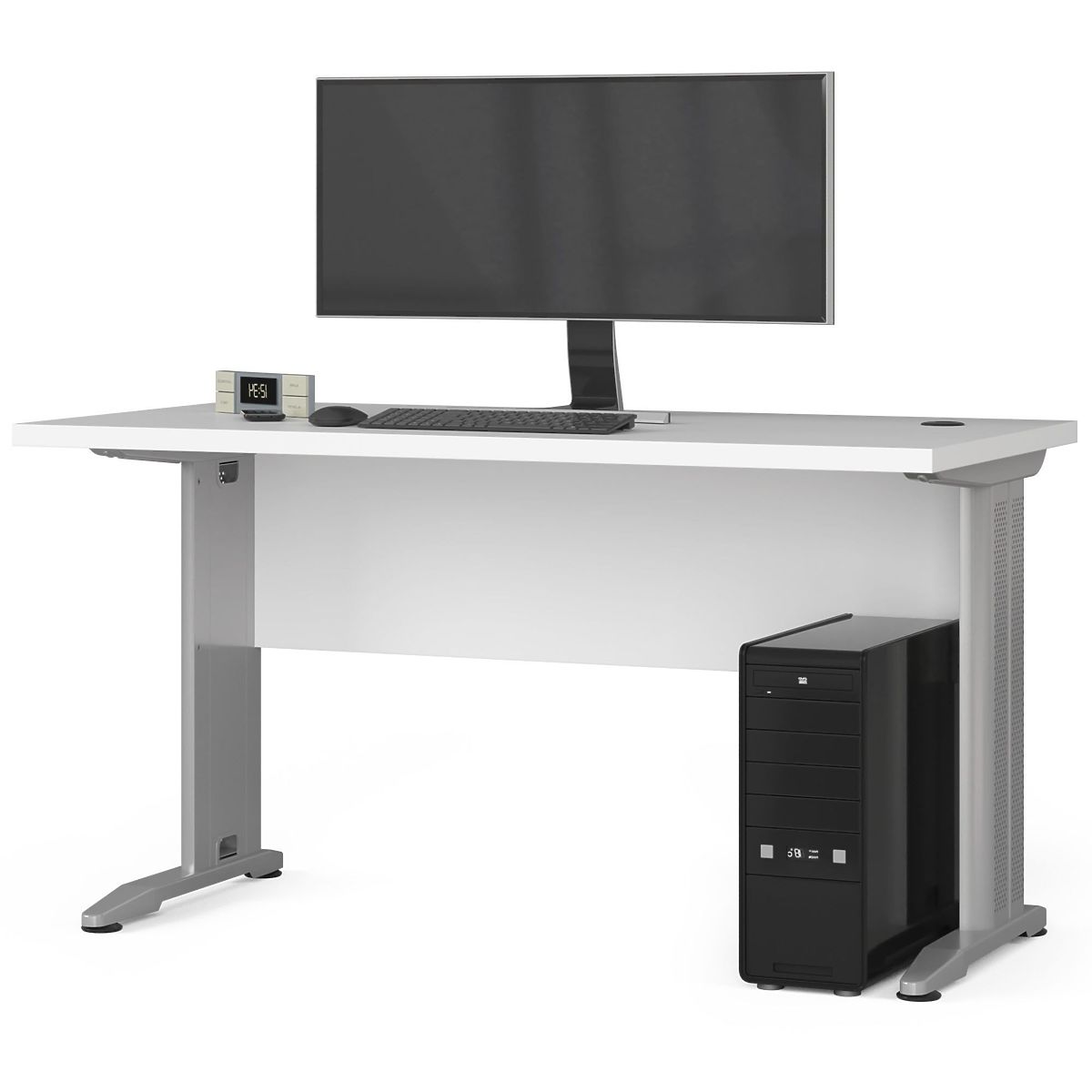 Samostoječa miza BM-135 v beli barvi je idealna rešitev za računalniško postajo v vsakem domu ali pisarni. Pohištvo je izdelano iz laminirane plošče debeline 32 milimetrov, ki je trpežna in odporna proti obrabi. Vidni robovi mize so opremljeni z ABS robom, ki se prav tako ponaša z visoko odpornostjo proti poškodbam. Mat plošča in hrbtna stran se odlično ujemata s kovinskimi nogami. Če iščete predlog z veliko delovno površino, priporočamo, da raziščete našo ponudbo. Zagotavljamo najvišjo kakovost, funkcionalnost, sodoben dizajn in ugodno ceno. Mizi lahko prilagodite dodatno pisarniško pohištvo, ki je na voljo v naši spletni trgovini. Upamo, da bo izpolnila pričakovanja tudi najzahtevnejših strank. Miza je enostavna za čiščenje, njena preprosta in hkrati elegantna oblika pa pohištvu daje brezčasen in univerzalen značaj.