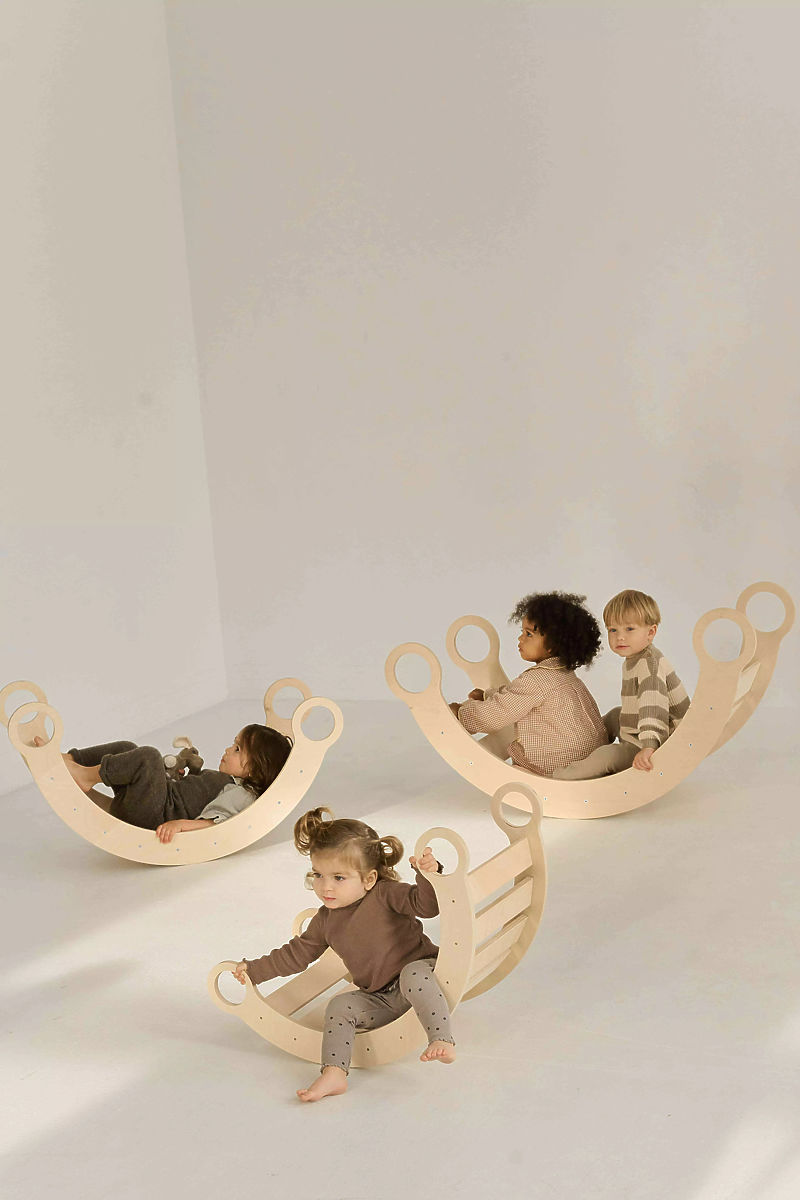 Slogovna lesena Montessori gugalnica S v naravni barvi je idealen dodatek za otroško sobo ali igralnico. Ta večnamenski set omogoča ne le varno guganje, temveč tudi kreativno igro – lahko služi kot skrivališče, majhna miza ali osnova za gradnjo. Naravno razvija motoriko, ravnotežje in moč otrok. Gugalnica Montessori S je trdna in vzdržljiva zahvaljujoč kakovostnemu naravnemu lesu. Njena preprosta in brezčasna zasnova se zlahka prilega vsakemu interierju, otrokom nudi ure zabave in hkrati podpira njihov fizični in psihomotorični razvoj.