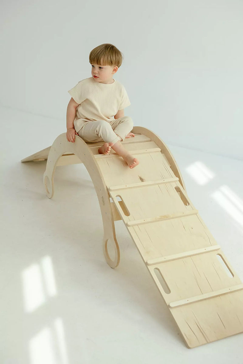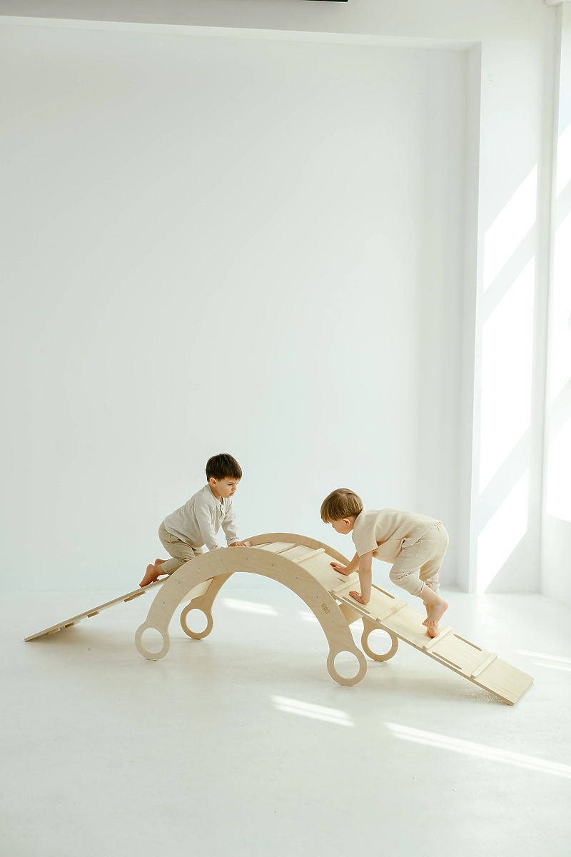 Obojestranske plošče so zasnovane z mislijo na raznolikost gibalnih aktivnosti. Gladki del služi kot tobogan, medtem ko je druga stran opremljena s prečkami ali plezalnimi kamni, ki podpirajo moč, koordinacijo in pogum malih pustolovcev.