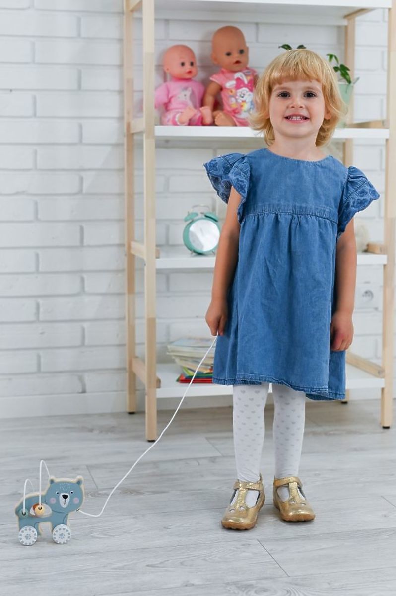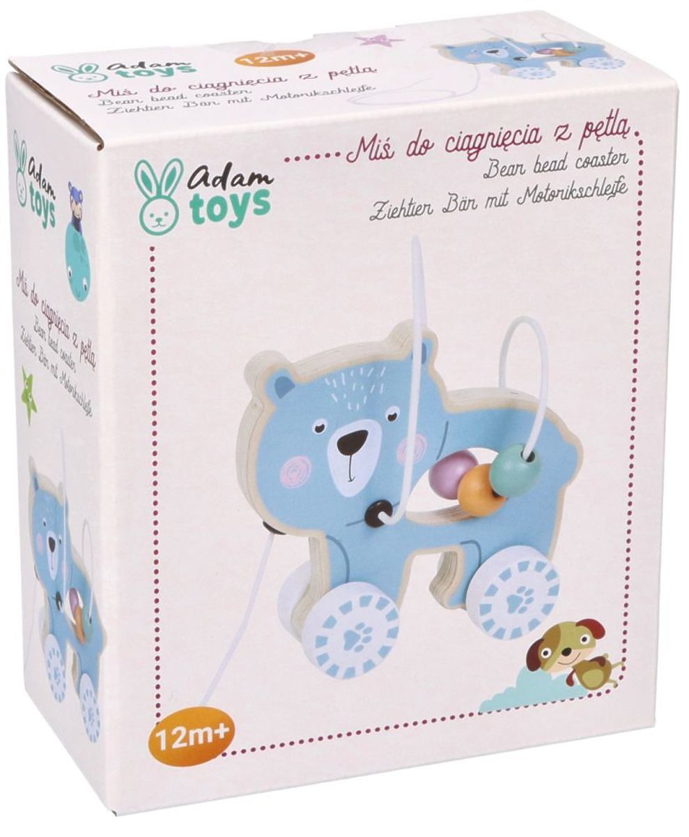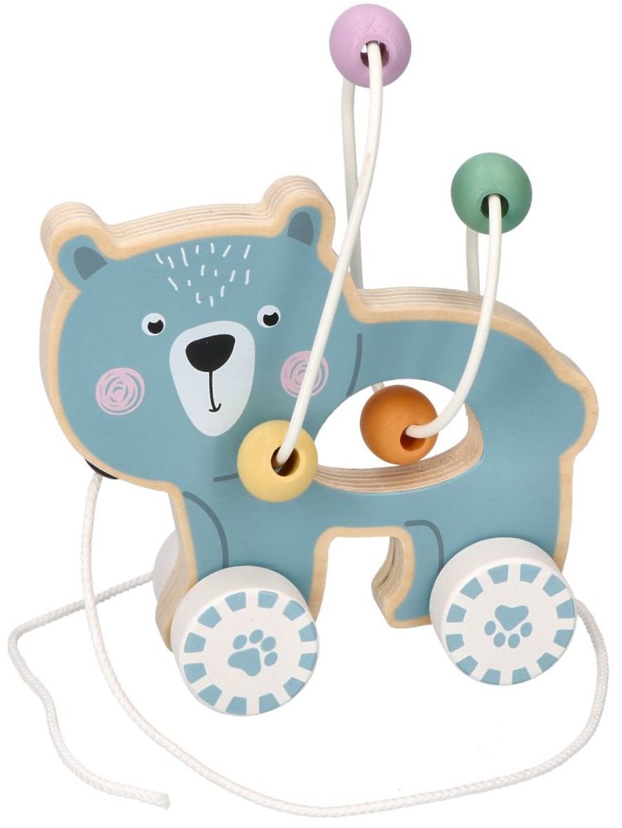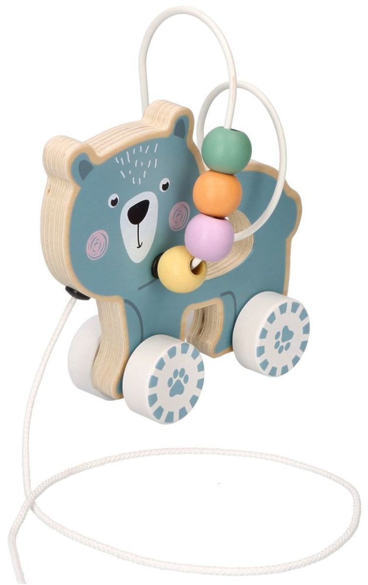 Medvedek na vrvici bo zagotovo postal priljubljen spremljevalec prvih sprehodov. Sedaj bo učenje hoje še prijetnejše in zanimivejše. Ta preprosta igrača bo spodbudila otroka k skupni igri in učenju. Otroci radi vlečejo nekaj za seboj, in bolj ko se dogaja, pogosteje in raje se bodo naši malčki poskušali samostojno sprehajati. Tudi ko se otrok utrudi, si lahko vzame majhen odmor in se igra z barvnimi kroglicami na zanki, s katero je medvedek opremljen. Igra s prepletanjem kroglic razvija motoriko malih rok in uči koordinacijo.