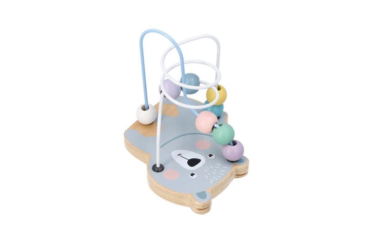 Igrača je sestavljena iz podstavka z upodobitvijo Medvedka, 2 kovinskih žic, upognjenih tako, da tvorita zanke, in na vsaki žici so 4 lesene kroglice. Vse je zapakirano v estetski škatli, idealno kot darilo.