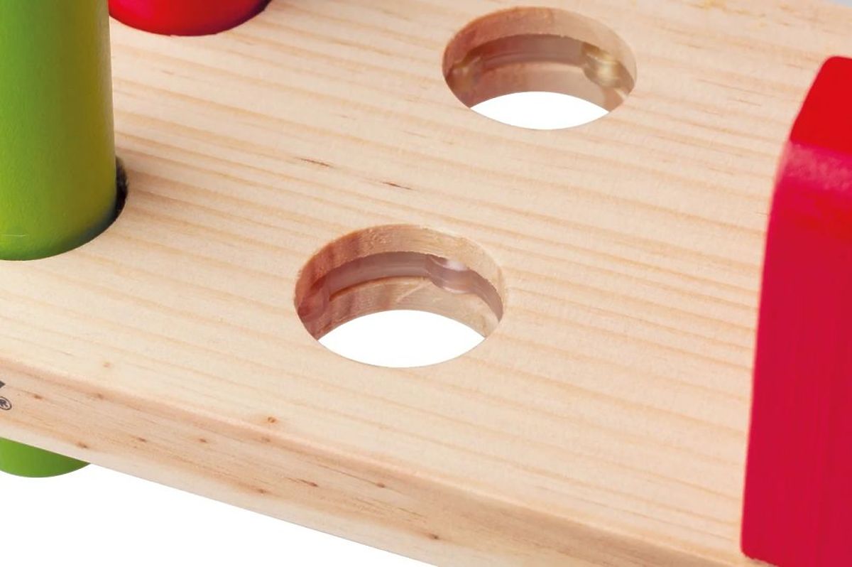Ta igrača je uresničitev sanj za marsikaterega fanta ali deklico - vanjo lahko tolčete in udarjate s posebnim kladivom, kolikor želite! In najboljše pri tem je, da nihče ne bo rekel, naj prenehate, ali da to ni mogoče. Tukaj je priporočljivo z veliko močjo udariti s priloženim kladivom v posebej pritrjene lesene zatiče. To je dovolj dober razlog, da postane kladivo priljubljena igrača otroka.