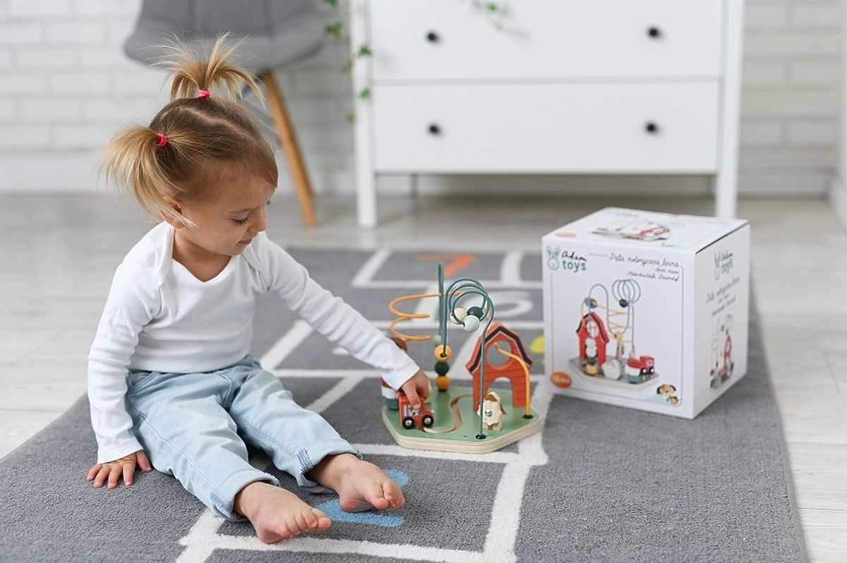 Izlet na podeželje je čudovita izkušnja – kmet pri delu, pujsek, ki se vozi iz korita, ali krava, ki se pase na travniku. Z motorično igro znamke AdamToys lahko vaš otrok spozna podeželsko življenje in kmetijo z živalmi.
