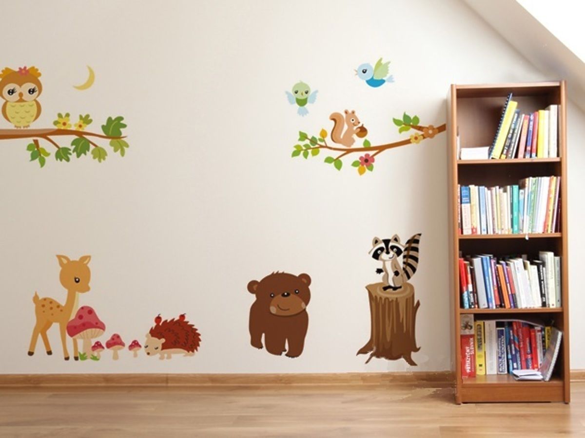 Krásná dekorace na zeď s roztomilými lesními zvířátky .. več