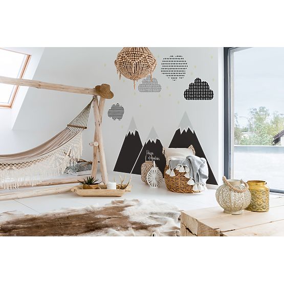 Nápaditá dekorace za postel dítěte. Stěna za postelí již nebude nikdy upatlaná. Obrovskou výhodou této dekorace je také to, že na černou plochu, která plní funkci tabule, mohou děti kreslit klasickou bílou křídou a tím rozvíjet svou fantazii. Nálepky jsou trvalé a chrání před různým poškozením stěny. Pro udržování je stačí občas přetřít vlhkým hadříkem.