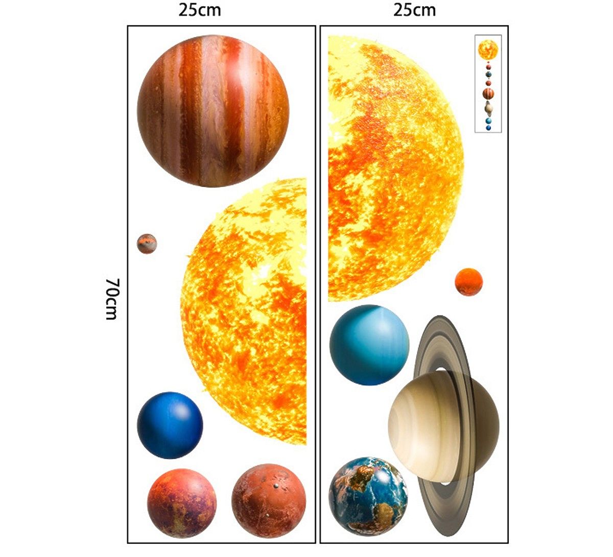 Nalepke so idealna rešitev za hitro menjavo in dekoracijo otroške sobe. Izvirna tematika planetov bo pustolovščina za vsakega raziskovalca globin vesolja. Ta dekoracija spodbuja otroško domišljijo in prostoru doda zanimiv element.