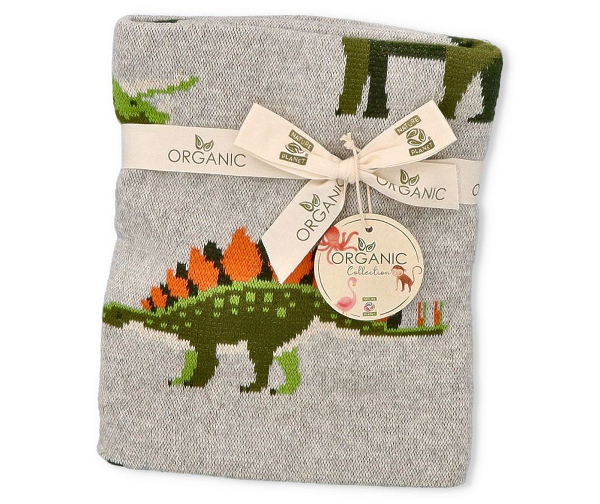 Odeja Dinozavri iz organskega bombaža je idealna izbira za otroško sobo, ki združuje naravo in sodoben dizajn. Odeja je izdelana v naravni, sivi barvi z motivom dinozavrov. Odlično preoblikuje otroški kotiček in mu daje edinstven značaj. Odeja se odlično prilega v voziček, zibelko ali posteljico. Idealna za piknik ali izlet. Odeja je trpežna in prijetna na dotik, lahko otroku služi več let.