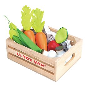 Ta lesen zaboj za svežo zelenjavo na tržnici vsebuje izbor zelenjave, kot so korenje, brokoli, paprika, čebula in drugo. Odličen dodatek k leseni kuhinji, za vse kuharje začetnike. Hrana za lesene igrače Bigjigs Toys je idealna za pomoč vašemu otroku pri spoznavanju pomena zdrave in uravnotežene prehrane, od kod prihaja naša hrana in kako jo pripravljamo. Po igri lahko leseno hrano pospravite nazaj v praktično škatlo in pritrdite s čistim drsnim pokrovom. Glavne značilnosti: razvija otrokove motorične sposobnosti praktična škatla za shranjevanje zelenjave izdelana iz kakovostnih, odgovorno dobavljenih materialov, ki ustreza veljavnim evropskim varnostnim standardom