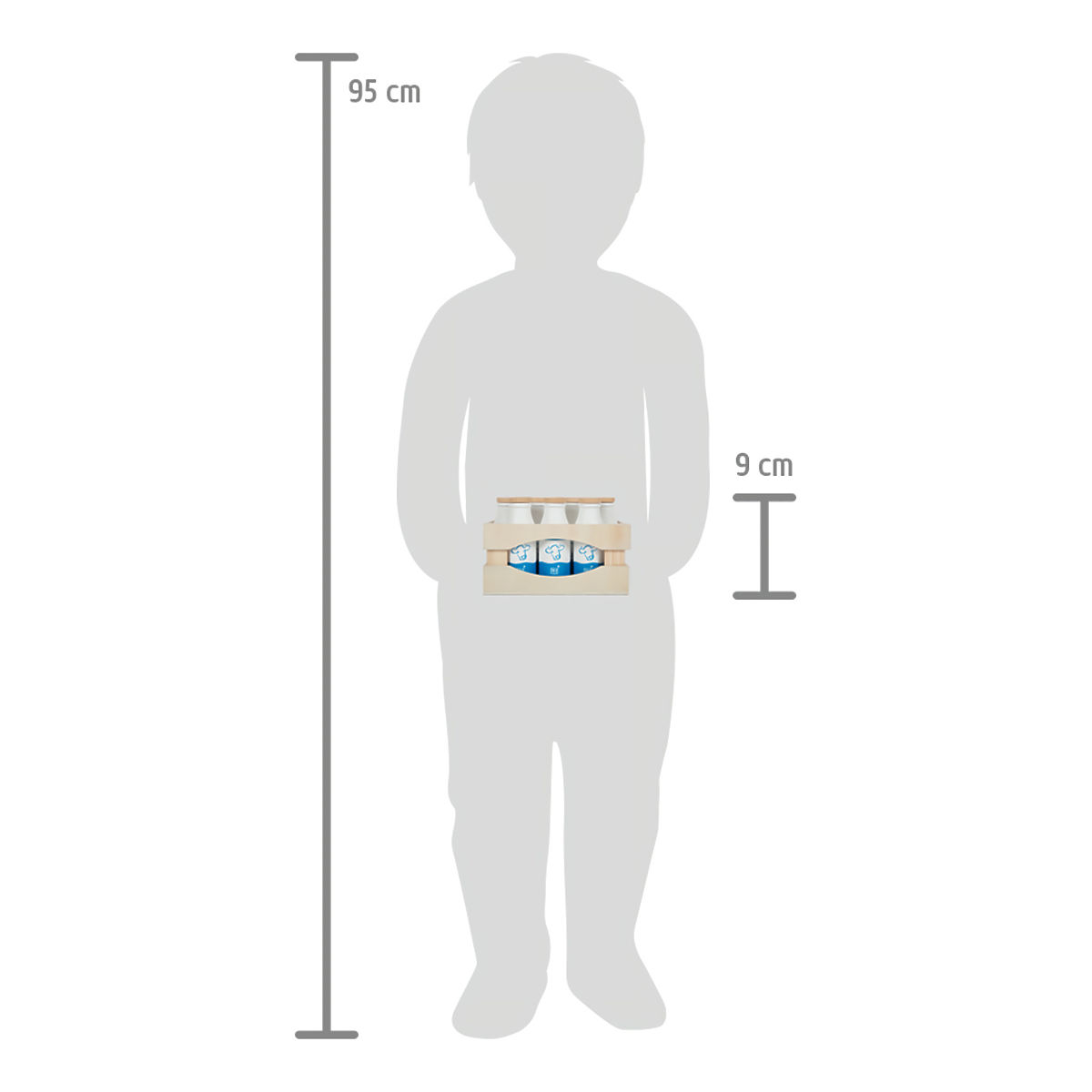 Kaj bi bila otroška prodajna stojnica brez mleka? V robustno zaboj se prilega 10 steklenic mleka, igrača je popolna za realistično igro v kuhinji ali pri prodaji. Zahvaljujoč preprostim ilustracijam jo zlahka razumejo tudi najmlajši otroci. Otroci lahko kupijo mleko v trgovinici in iz njega skuhajo jed. Igrača spodbuja otroke k igri vlog. V kombinaciji z drugimi izdelki iz serije "Fresh" bodo uživali v pravi zabavi. Glavne lastnosti: robustna lesena zaboj s 10 lesenimi steklenicami mleka, idealen dodatek za otroške kuhinje in prodajne stojnice, realistična igrača, ki jo zlahka razumejo tudi najmlajši otroci, združljiva z drugimi izdelki iz serije "Fresh"