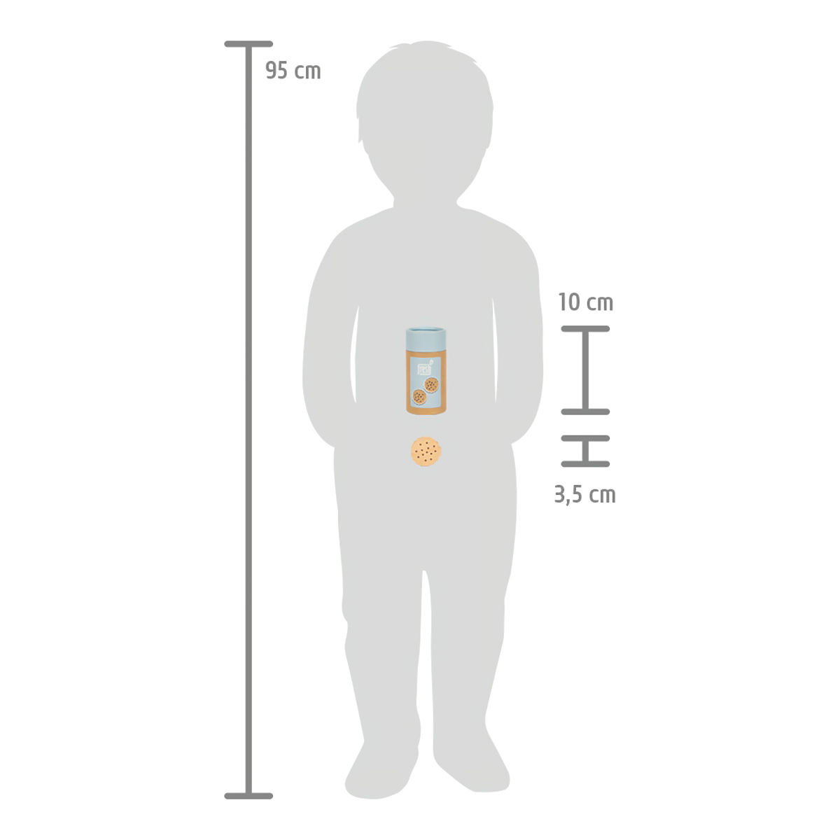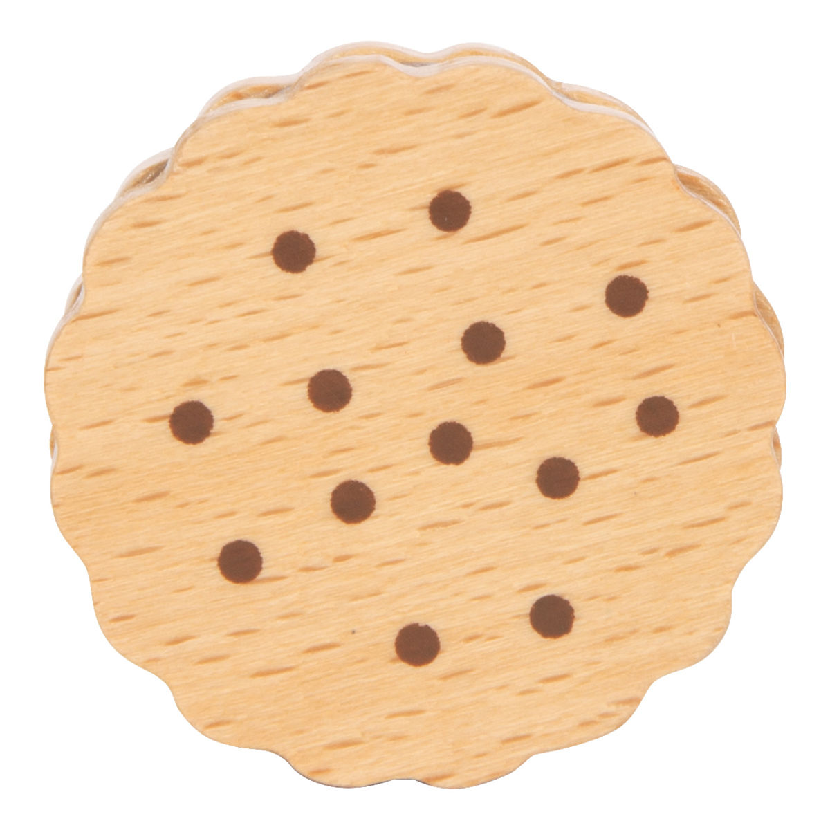 Za male sladokusce! Teh 5 robustnih sendvič piškotov je izdelanih iz lesa. Obogatili bodo vsako otroško prodajalno ali kuhinjo. Zapakirani so v trdni embalaži iz naravnega kartona. Naravni in realistični videz teh piškotov bo navdušil otroke. Igrača bo otrokom ponudila dolgotrajno zabavo, zlasti v kombinaciji z drugimi izdelki iz serije "Fresh". Glavne lastnosti: pet robustnih piškotov, idealen dodatek za otroške prodajalne in kuhinje, piškoti imajo čokoladni nadev, so realistični, zapakirani v valjasti embalaži z odstranljivim pokrovom, slike so lahko razumljive tudi najmlajšim otrokom, združljivi z drugimi izdelki iz serije "Fresh"