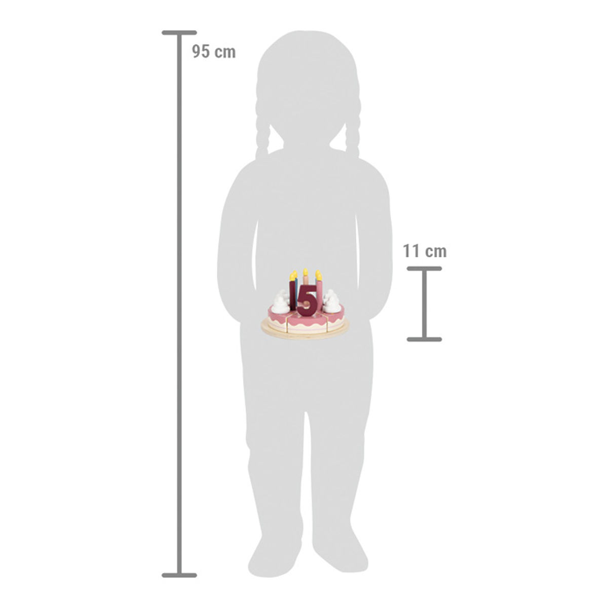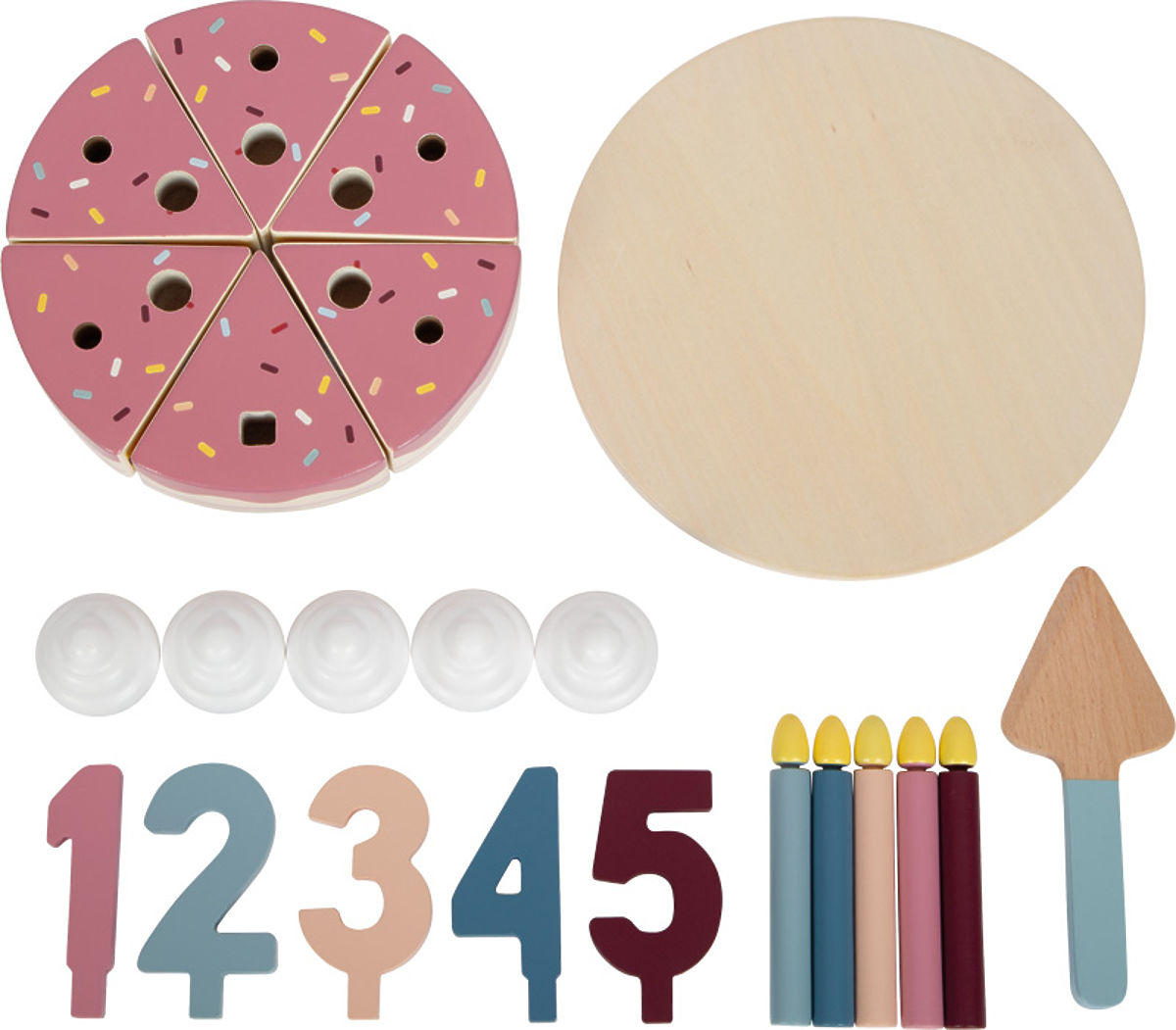 Rojstnodnevna torta je nujna. Otroci lahko med igro sprostijo svojo domišljijo in priredijo pravo rojstnodnevno zabavo za svoje punčke ali najljubše plišaste igrače. Torta je primerna tudi kot dekoracija ali za igro v kuhinji. Ta rojstnodnevna torta s kremo in barvnimi posipi je izdelana iz 100% certificiranega lesa FSC® in pritegne pozornost vsakega otroka. Ta igralni set je sestavljen iz 6 kosov torte, 5 kosov odstranljive kreme, 5 svečk in številk 1-5 ter ponuja številne priložnosti za igro in okrasitev. Ježki držijo prelive in posamezne kose torte skupaj, ki jih je mogoče enostavno ločiti z lopatico za torto in odstraniti, kar na zabaven način trenira motoriko in koordinacijo roka-oči. 2v1 Ta igralni set je primeren za "Tasty" kuhinjo. Glavne značilnosti: izdelano iz certificiranega lesa FSC® posamezni deli držijo skupaj s pomočjo ježka združljivo z "Tasty" kuhinjsko opremo trenira motoriko in koordinacijo roka-oči igrača spodbuja kreativnost, domišljijo, pomaga pri razvoju govora in socialnih veščin. Znamka in certifikat FSC® (Forest Stewardship Council) zagotavlja, da les, iz katerega je izdelek izdelan, ni bil pridobljen nezakonito in izvira iz gozdov, ki so upravljani na okolju prijazen ali naravi prijazen način, v katerem so upoštevane stroge okoljske in socialne zahteve. Znamka FSC® na izdelku pomeni, da s svojim nakupom pomagate varovati gozdove in podpirate okolju prijazno, odgovorno ali naravi prijazno gospodarjenje, zaradi katerega so naši gozdovi stabilnejši, bolj zdravi, imajo naravno vrstno sestavo in se bolje upirajo negativnim posledicam podnebnih sprememb.