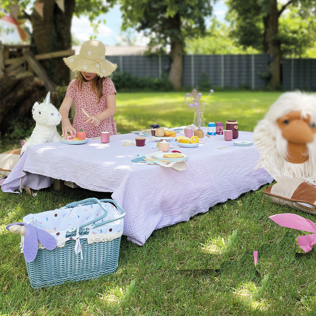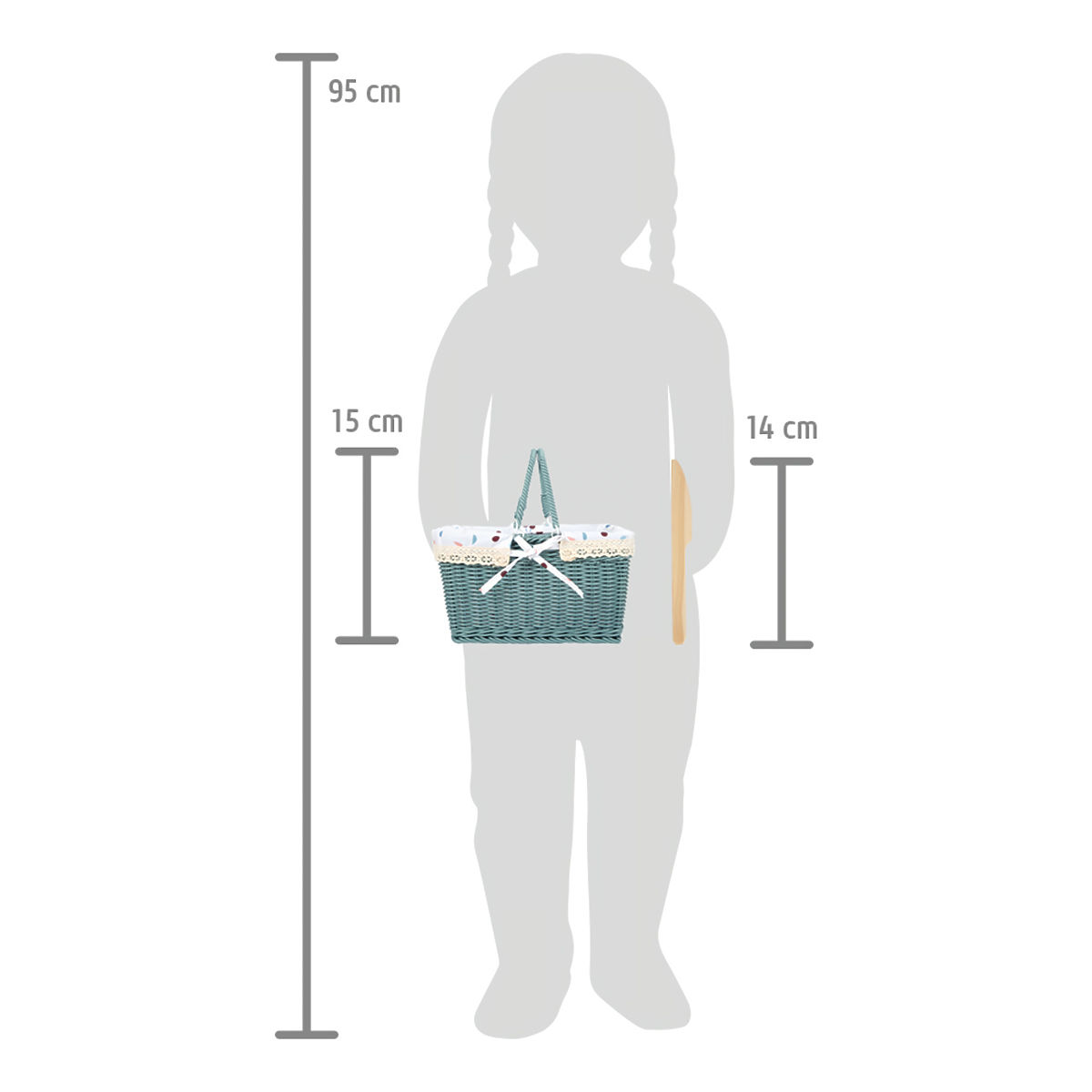 Čas je za piknik! Ta kakovostna piknik košara z zložljivimi ročaji in piknik odejo bo odličen dodatek za vaše izlete na podeželje ali vrt. Košara je spletena iz kakovostne vrbe in je opremljena za 2 osebi. Posoda in hrana sta narejeni iz trdnega lesa. Pomaranča in rogljiček se držita skupaj zahvaljujoč ježku. Notranjo oblogo košare je mogoče odstraniti in enostavno očistiti. Ta igrača ima enako barvno shemo kot kuhinja "Tasty" in drugi izdelki iz te serije. Otroci bodo uživali v domišljijski igri doma in na prostem. Nekatera živila je mogoče "rezati" s pomočjo lesenega noža. Glavne lastnosti: moderna in robustna vrbena piknik košara, "hrana" za dve osebi, ročaji se lahko zložijo, v paketu odeja z enakim motivom, notranjo oblogo je mogoče enostavno odstraniti, igrača za igro vlog v kuhinji ali na pikniku, pomaga pri razvoju fine motorike, socialnih in vsakodnevnih veščin, sodoben dizajn v kombinaciji z belo, naravnim lesom in trendovskimi barvami, združljiva z drugimi izdelki iz serije "Tasty"