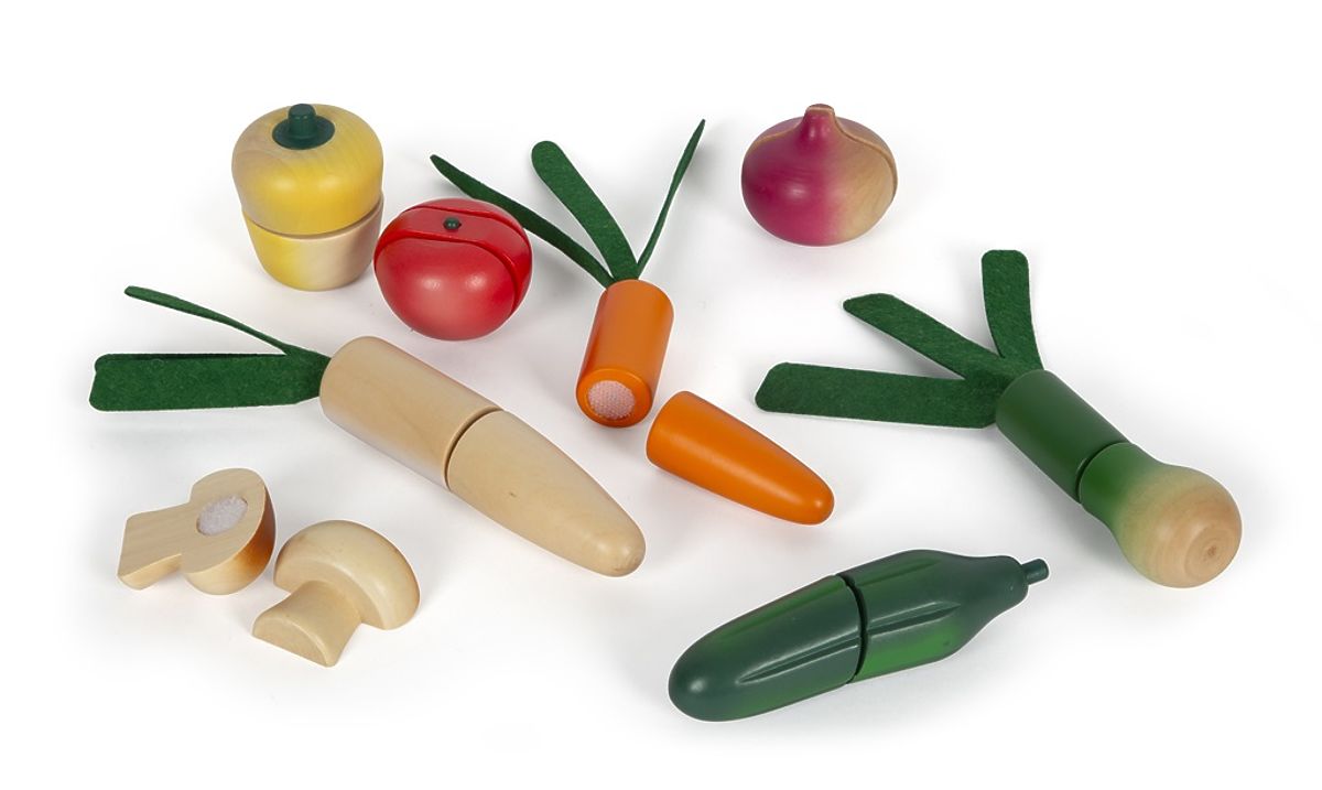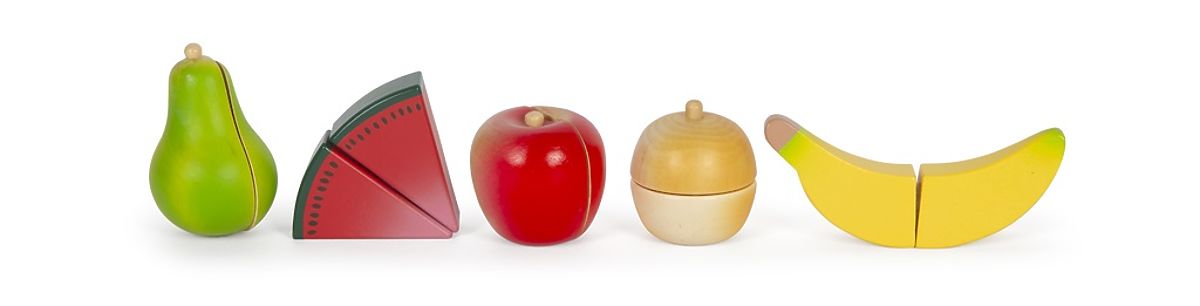 Ta velik komplet hrane v praktični škatli je ne le nepogrešljiv dodatek vsaki otroški kuhinji, temveč tudi uči otroke prepoznavati osnovne vrste sadja, zelenjave in druge hrane. Za izdelavo je bilo uporabljeno robustno les in vse je realistično obdelano. Hrana je povezana z ježkom, otroci pa jo lahko enostavno "razrežejo" s priloženim nožem. Set vsebuje lesen nož, paradižnik, kumaro, korenje, jabolko, banano, gobo, papriko, čebulo, por, pomarančo, melono, hruško, redkev (peteršilj). Večkrat uporabna embalaža otroke na zabaven način uči odgovornosti do okolja - zmanjšati odpadke in zapravljanje, ponovno uporabiti stvari, reciklirati. Glavne značilnosti: primerno za otroške kuhinje, zahvaljujoč ježkom je hrano mogoče "rezati", uči otroke odgovornosti do okolja, spodbuja kreativno in domiselno igro.