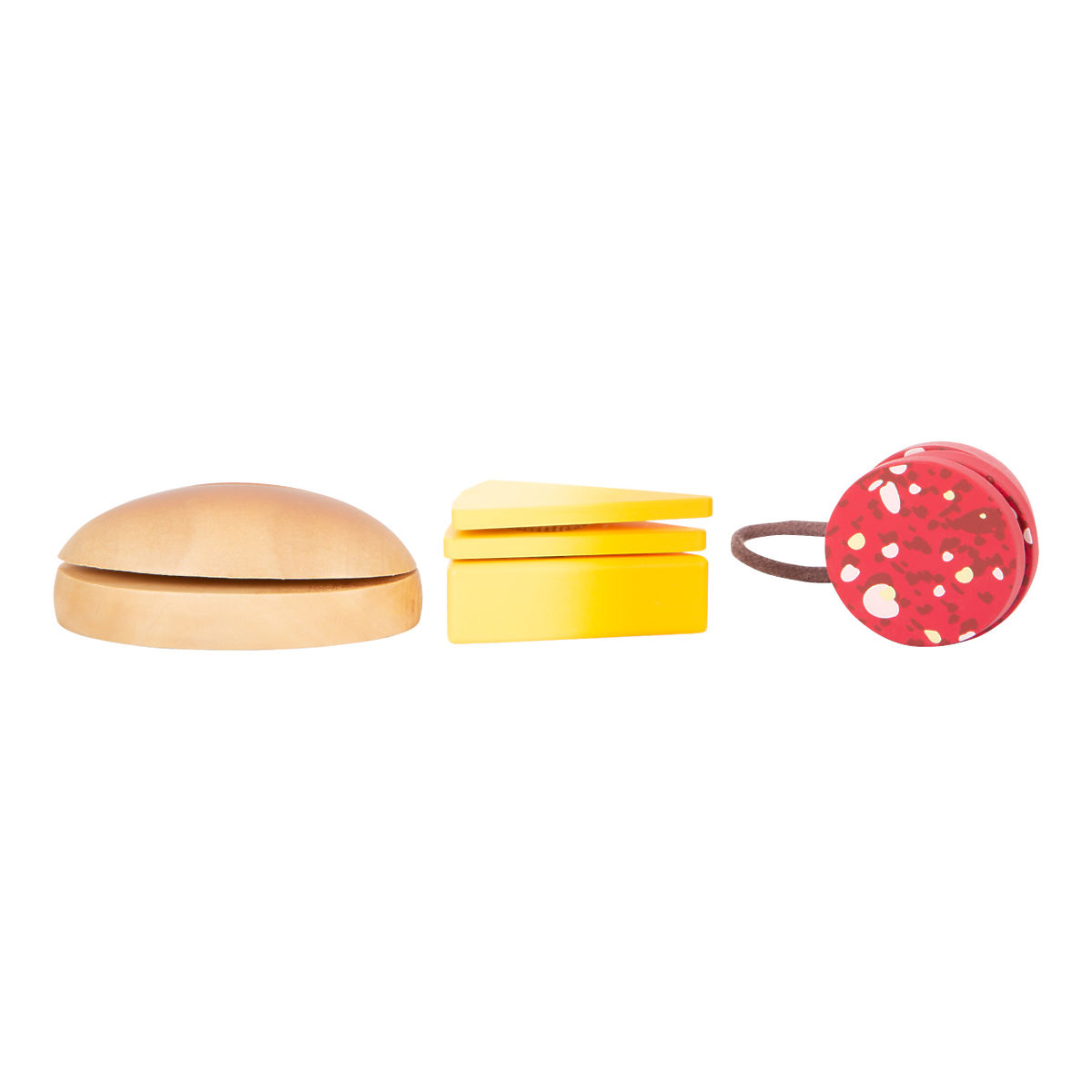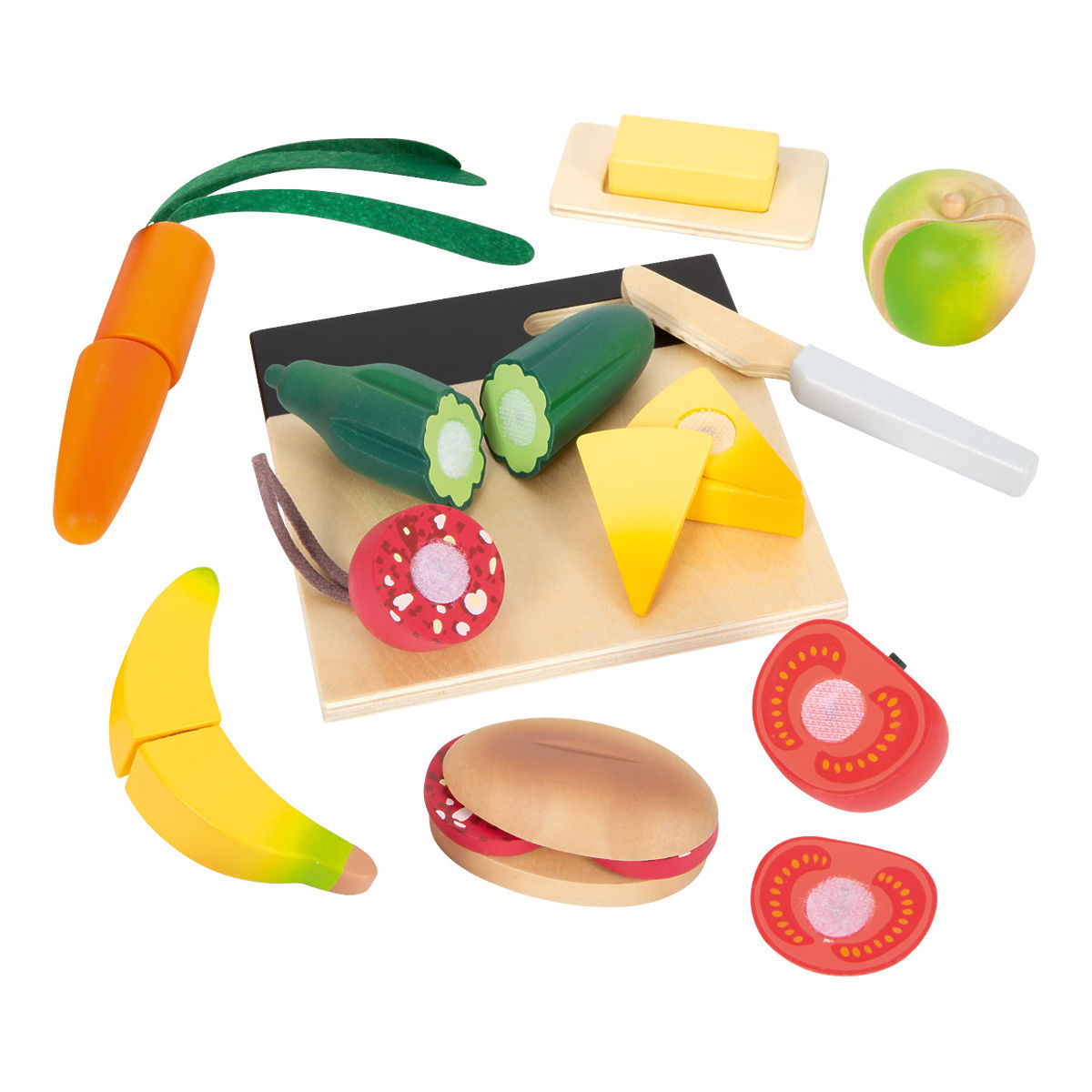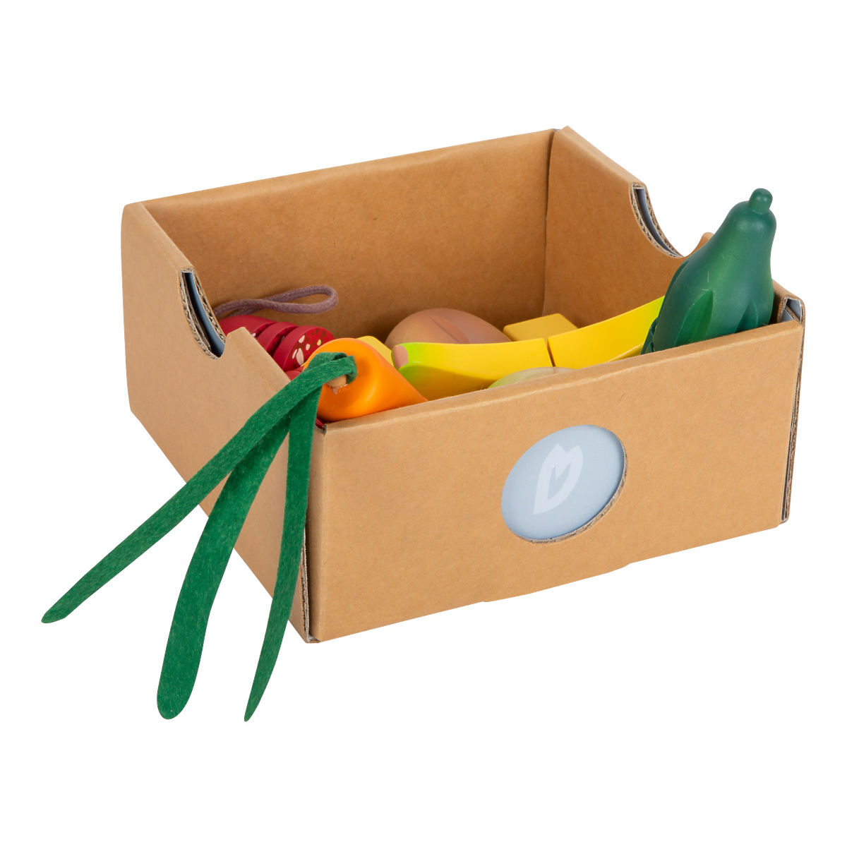 S tem kompletom za rezanje živil iz robustnega lesa se lahko otroci igrajo kuharskega mojstra! Sestavljen je iz običajnih živil, ki jih otroci brez težav prepoznajo. V paketu je deska za rezanje, lesen nož, večkratna embalaža, ki jo lahko uporabite za shranjevanje igrače. Na eno stran deske lahko pišete s kredo, zapišite si nakupovalni seznam ali recept. Zelo pomembno je naučiti se pravilne tehnike rezanja, s to igračo bo šlo kot po maslu. Paradižnik, kumara, korenje, jabolko, banana, kos sira, salama, maslo in kruh – vse to je v tem kompletu! Naravno videti in podrobno izdelana živila držijo skupaj s pomočjo ježka. Zahvaljujoč trajnostni embalaži se otroci naučijo nekaj novega o ekologiji. Desko za rezanje lahko obesite zahvaljujoč zanki. Glavne značilnosti: živila za rezanje iz robustnega lesa, deli na ježka, obsežen komplet z desko, nožem, paradižnikom, kumaro, korenjem, jabolkom, banano, kosom sira, salamo, kruhom, pakirano v večkratni embalaži, otroci se med igro naučijo nekaj novega o ekologiji, na eno stran deske lahko pišete s kredo.