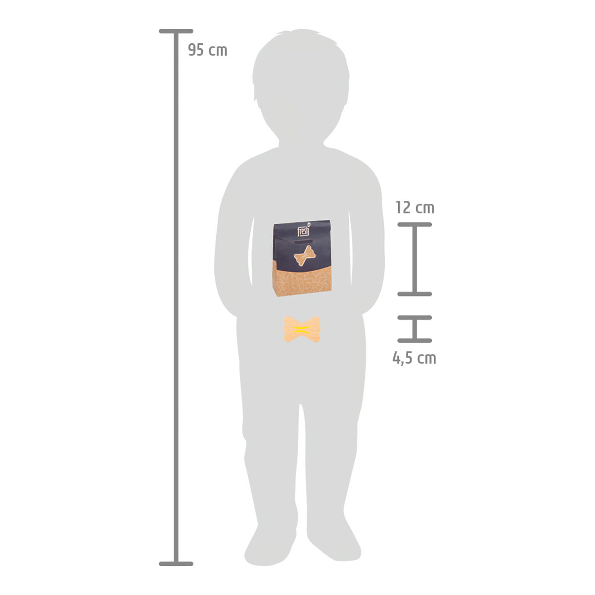 Otroci obožujejo testenine! Lesene farfalle se bodo prilegale vsakemu prodajnemu stojalu ali otroški kuhinji. V trdni embalaži iz naravnega kartona jih je 12, izdelane so iz trdnega lesa. Praktične in poučne, slikovni vodič za pripravo je na zadnji strani embalaže, razumeli ga bodo tudi najmlajši otroci. Kako bodo vaši otroci uporabili to domiselno igračo? Bodo skuhali kosilo ali prodajali testenine v trgovini? Igrača otrokom ponuja dolgotrajno zabavo, predvsem v kombinaciji z drugimi izdelki iz serije „Fresh“. Glavne lastnosti: dvanajst robustnih testenin farfalleodličen dodatek otroškim prodajnim stojalom in kuhinjamzapakirane v neobdelan kartonškatlo je mogoče enostavno odpreti in ponovno zapretikompatibilne z drugimi izdelki iz serije „Fresh“