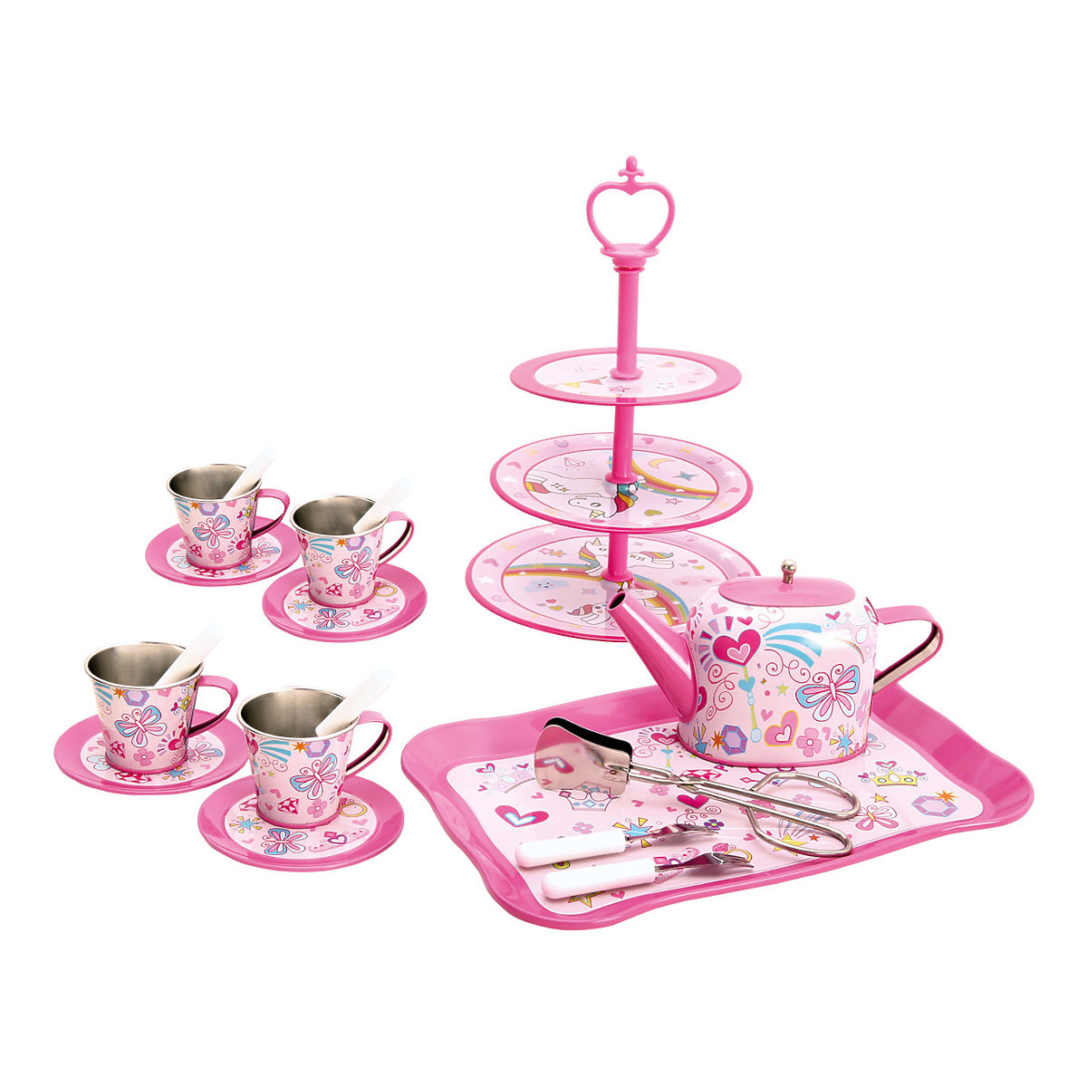 Čas za čarobni čajni party za starše, lutke in plišaste prijatelje! Z bogatim čajnim servisom lahko otroci razvijajo domišljijo ter svoje socialne in komunikacijske veščine. Set je podrobno okrašen, izdelan iz trpežne lahke kovine in neškodljive plastike. Glavne lastnosti: servis za 4 osebe, skupno 35 delov, trpežna izvedba