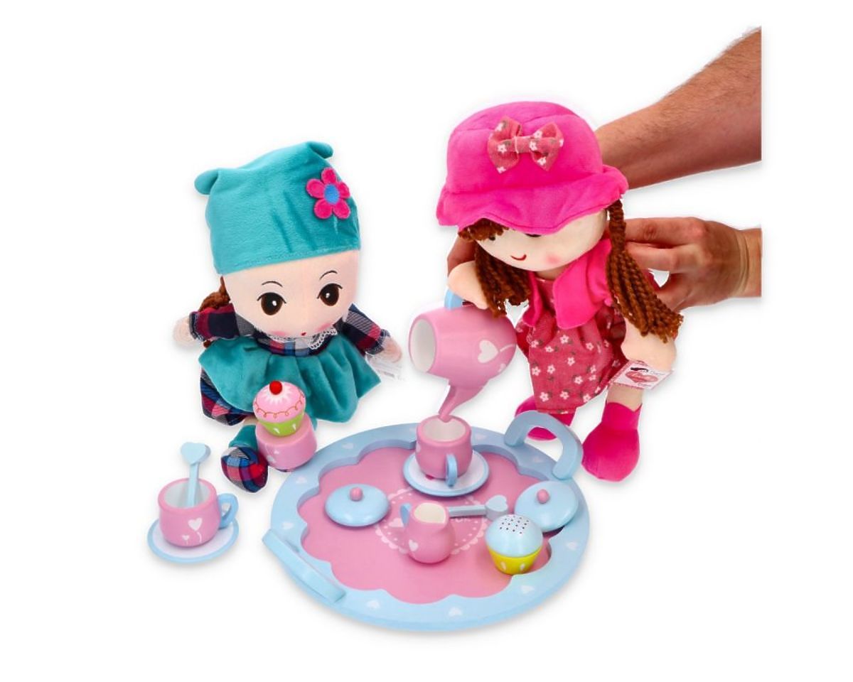 Z lesenim čajnim setom se boste zelo zabavali! Organizirajte piknik, čajanko ali rojstnodnevno zabavo za svoje punčke in plišaste živali.